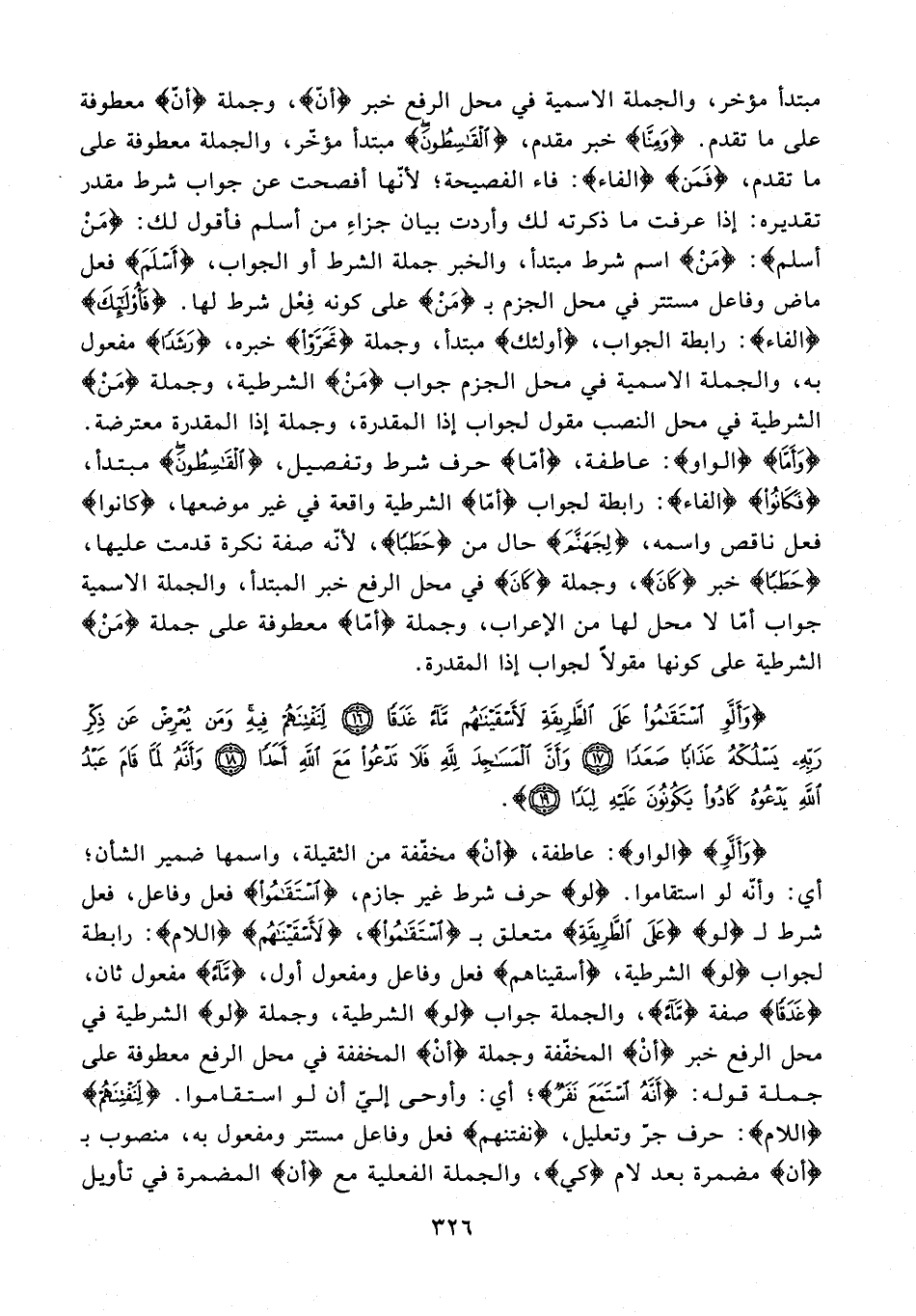 {وَأَلَّوِ اسْتَقَامُوا عَلَى الطَّرِيقَةِ لَأَسْقَيْنَاهُمْ مَاءً غَدَقًا (16) لِنَفْتِنَهُمْ فِيهِ وَمَنْ يُعْرِضْ عَنْ ذِكْرِ رَبِّهِ يَسْلُكْهُ عَذَابًا صَعَدًا (17) وَأَنَّ الْمَسَاجِدَ لِلَّهِ فَلَا تَدْعُوا مَعَ اللَّهِ أَحَدًا (18) وَأَنَّهُ لَمَّا قَامَ عَبْدُ اللَّهِ يَدْعُوهُ كَادُوا يَكُونُونَ عَلَيْهِ لِبَدًا (19)}.