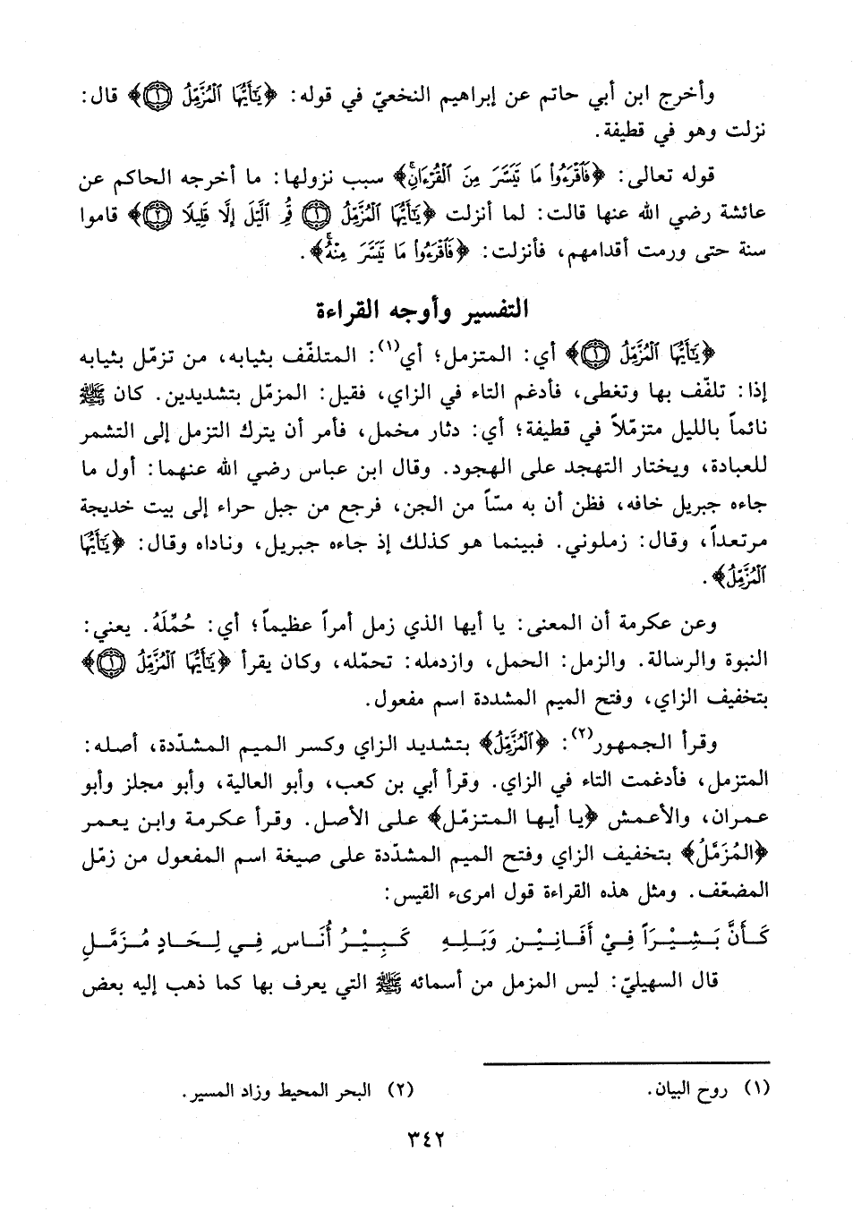 وأخرج ابن أبي حاتم عن إبراهيم النخعيّ في قوله: {يَا أَيُّهَا الْمُزَّمِّلُ (1)} قال: نزلت وهو في قطيفة.