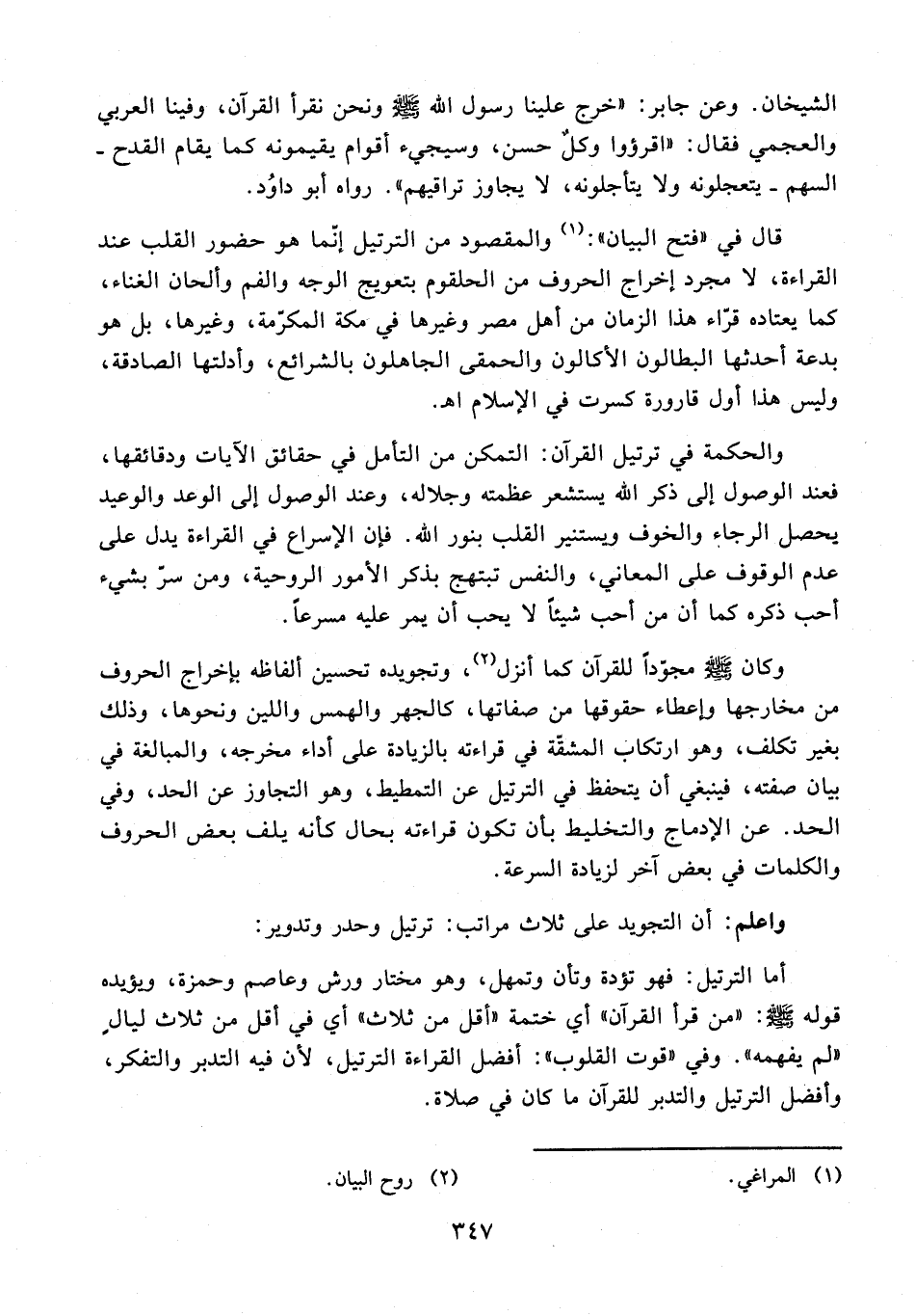 واعلم: أن التجويد على ثلاث مراتب: ترتيل وحدر وتدوير: