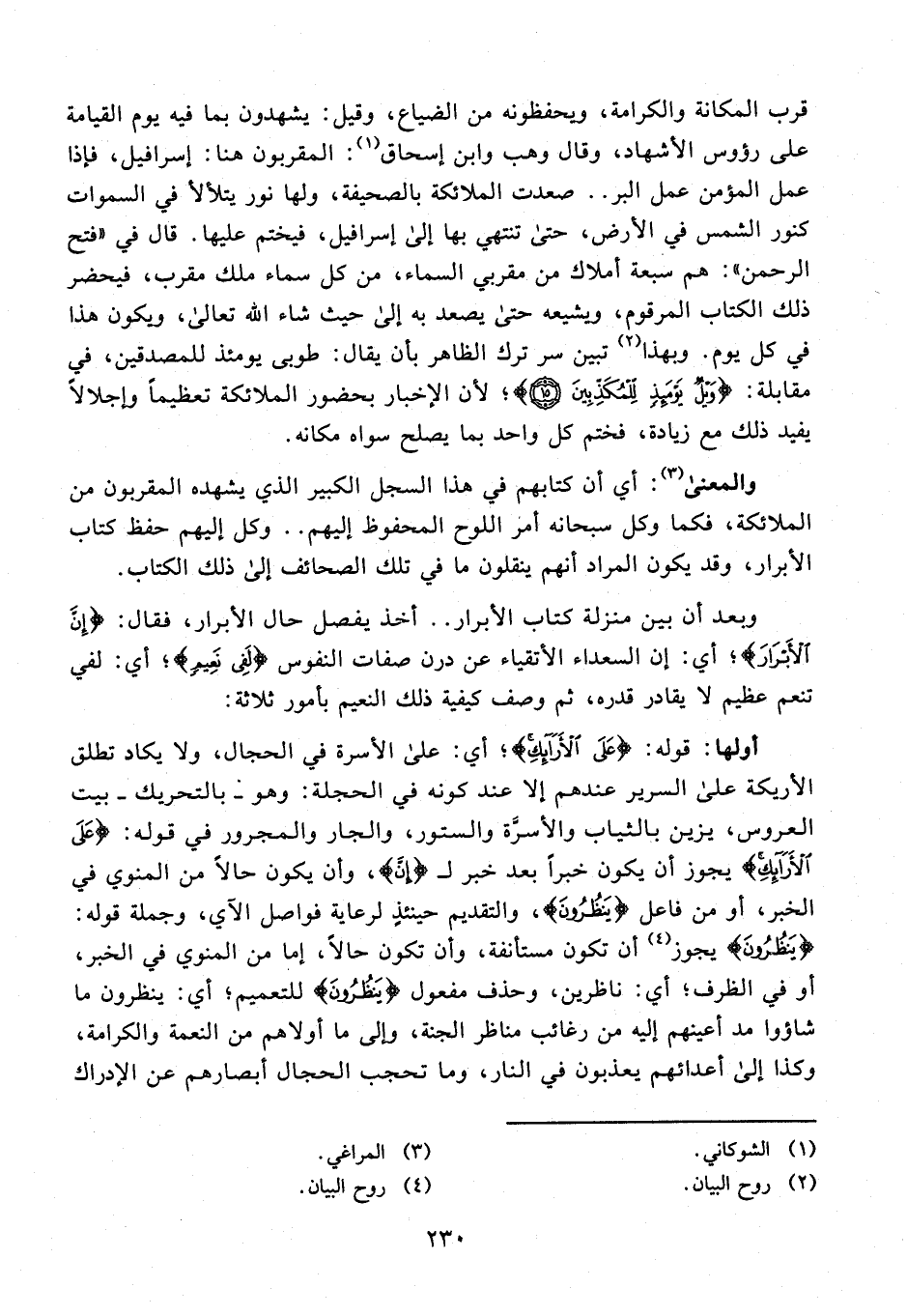 والمعنى (¬3): أي أن كتابهم في هذا السجل الكبير الذي يشهده المقربون من الملائكة، فكما وكل سبحانه أمر اللوح المحفوظ إليهم .. وكل إليهم حفظ كتاب الأبرار، وقد يكون المراد أنهم ينقلون ما في تلك الصحائف إلى ذلك الكتاب.