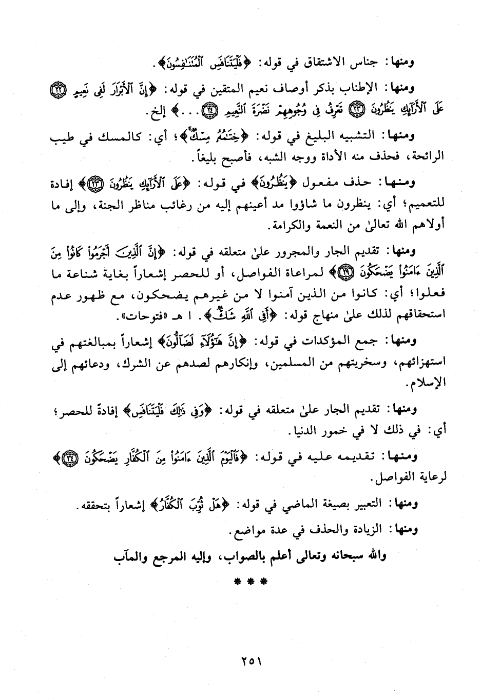 ومنها: تقديم الجار على متعلقه في قوله: {وَفِي ذَلِكَ فَلْيَتَنَافَسِ} إفادةً للحصر؛ أي: في ذلك لا في خمور الدنيا.