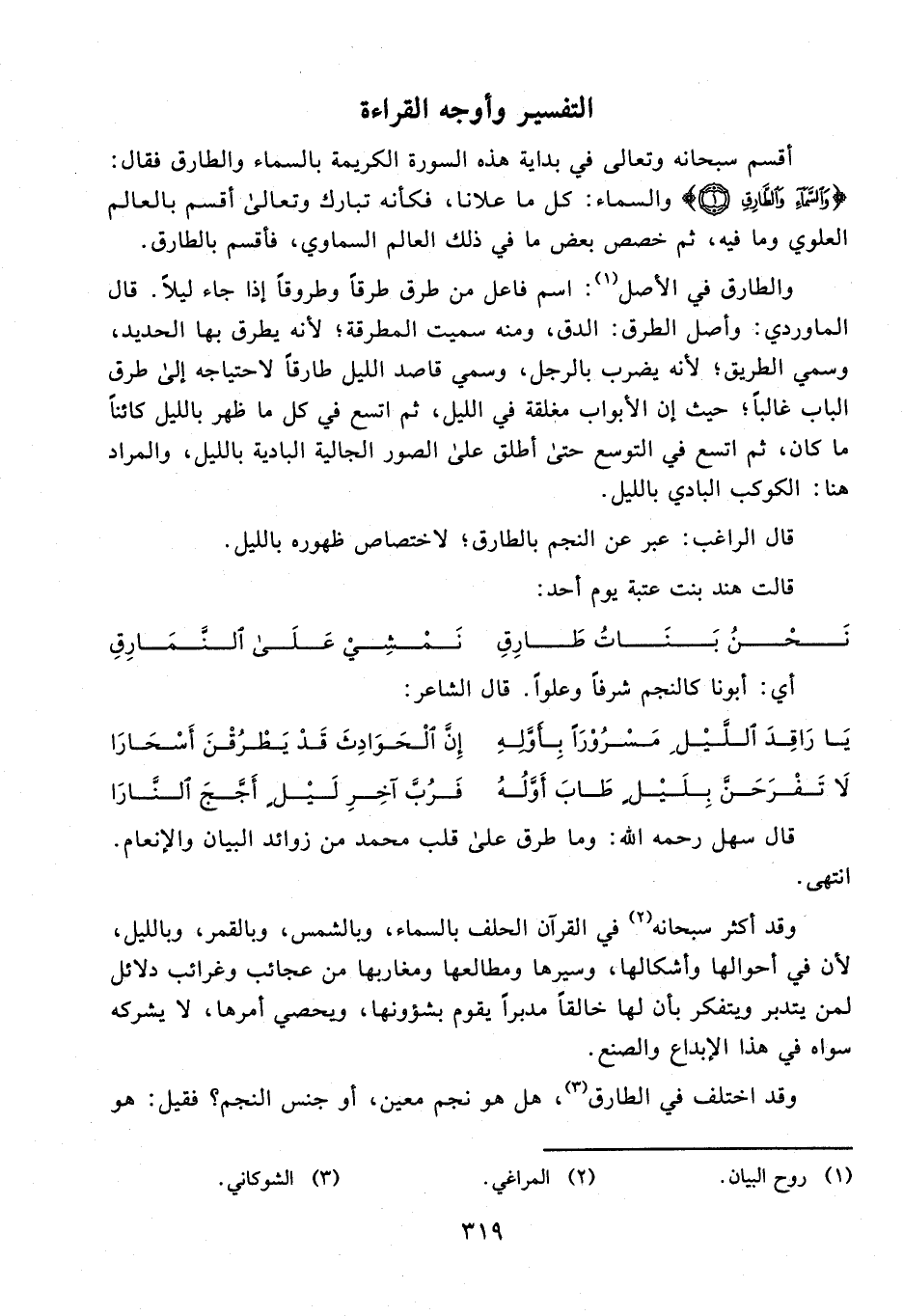 وقد اختلف في الطارق (¬3)، هل هو نجم معين، أو جنس النجم؟ فقيل: هو