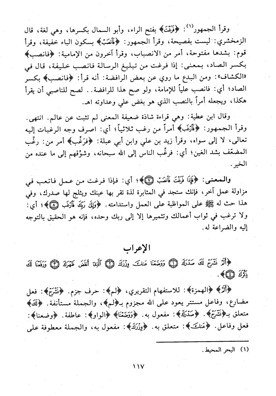 {أَلَمْ} {الهمزة}: للاستفهام التقريري، {لم}: حرف جزم. {نَشْرَحْ}: فعل مضارع، وفاعل مستتر يعود على الله مجزوم بـ {لم}، والجملة مستأنفة. {لَكَ} متعلق بـ {نَشْرَحْ}. {صَدْرَكَ}: مفعول به. {وَوَضَعْنَا} {الواو}: عاطفة. {وضعنا}: فعل وفاعل. {عَنْكَ}: متعلق به. {وِزْرَكَ}: مفعول به، والجملة معطوفة على