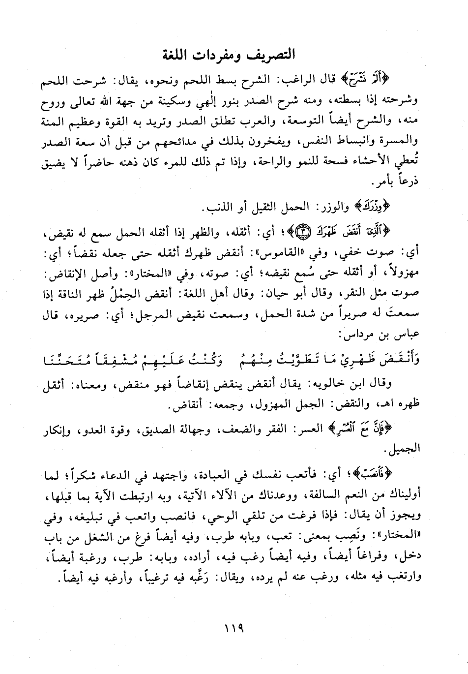 {أَلَمْ نَشْرَحْ} قال الراغب: الشرح بسط اللحم ونحوه، يقال: شرحت اللحم وشرحته إذا بسطته، ومنه شرح الصدر بنور إلهي وسكينة من جهة الله تعالى وروح منه، والشرح أيضًا التوسعة، والعرب تطلق الصدر وتريد به القوة وعظيم المنة والمسرة وانبساط النفس، ويفخرون بذلك في مدائحهم من قبل أن سعة الصدر تُعطي الأحشاء فسحة للنمو والراحة، وإذا تم ذلك للمرء كان ذهنه حاضرًا لا يضيق ذرعًا بأمر.
