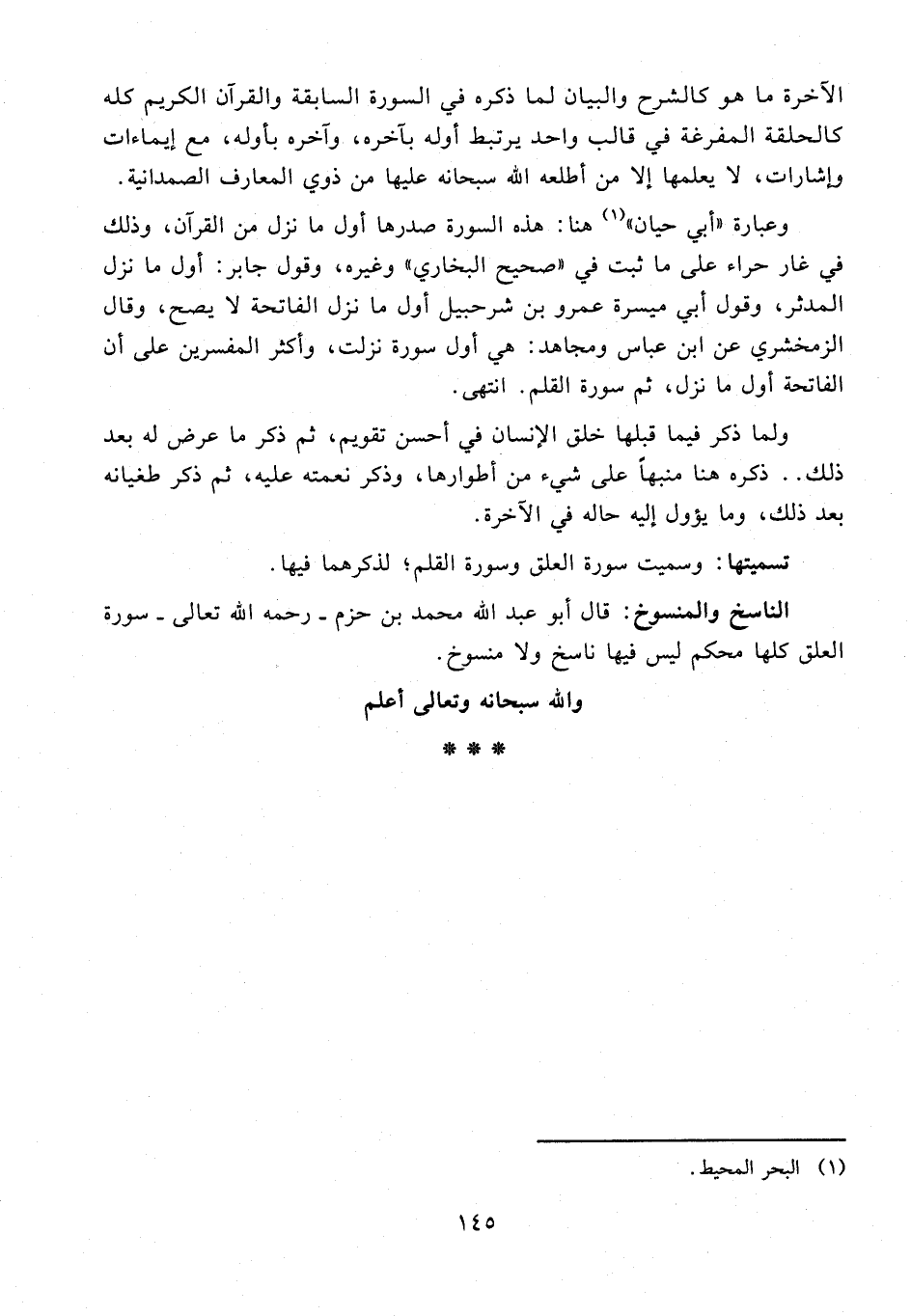 الناسخ والمنسوخ: قال أبو عبد الله محمد بن حزم - رحمه الله تعالى - سورة العلق كلها محكم ليس فيها ناسخ ولا منسوخ.