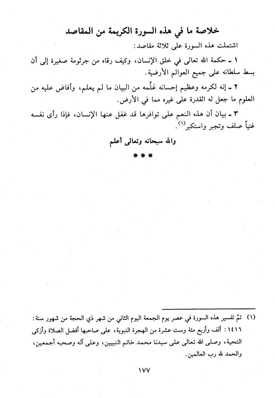 (¬1) تمَّ تفسير هذه السورة في عصر يوم الجمعة اليوم الثاني من شهر ذي الحجة من شهور سنة: 1416: ألف وأربع مئة وست عشرة من الهجرة النبوية، على صاحبها أفضل الصلاة وأزكى التحية، وصلى الله تعالى على سيدنا محمد خاتم النبيين، وعلى آله وصحبه أجمعين، والحمد لله رب العالمين.