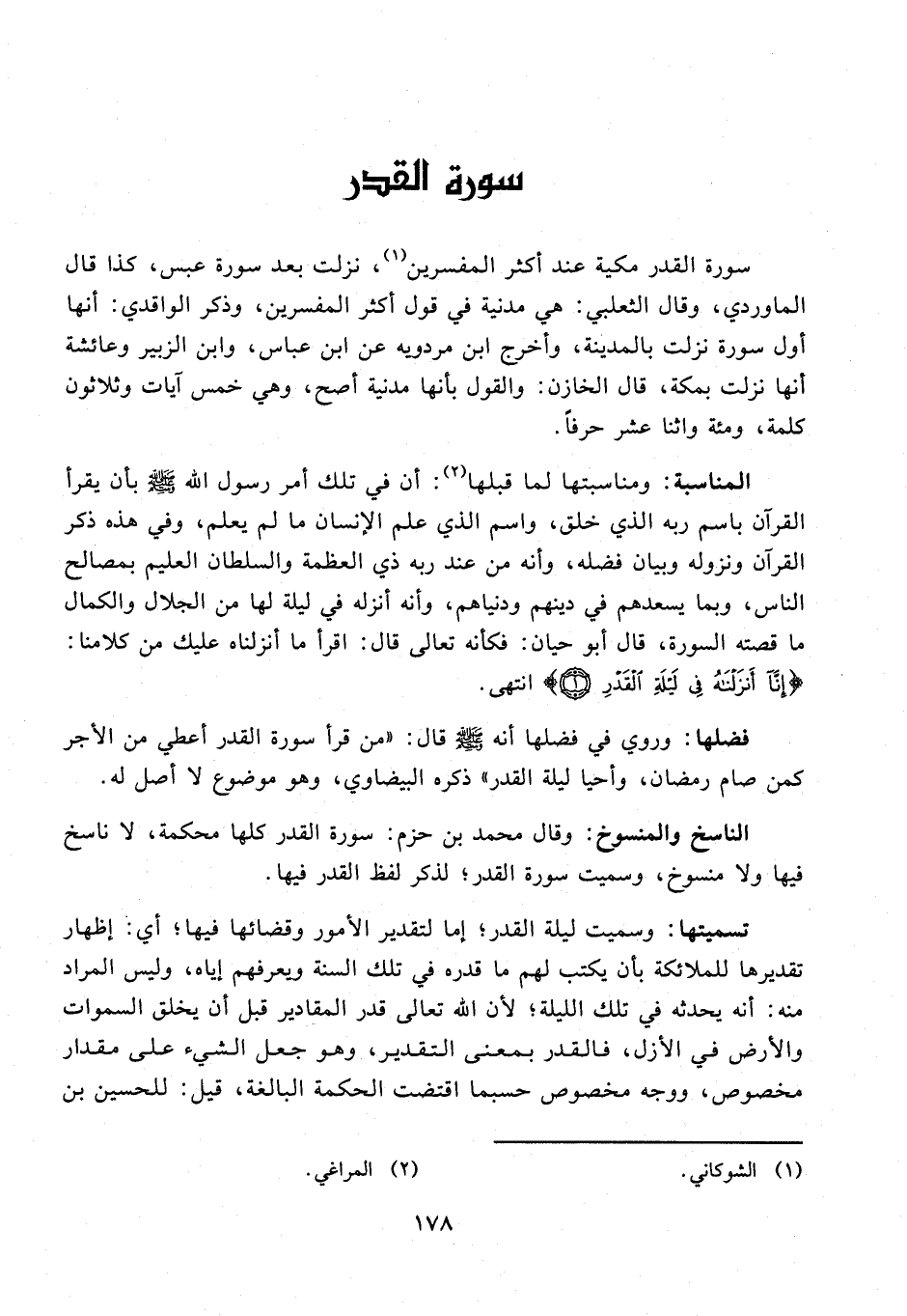 الناسخ والمنسوخ: وقال محمد بن حزم: سورة القدر كلها محكمة، لا ناسخ فيها ولا منسوخ، وسميت سورة القدر؛ لذكر لفظ القدر فيها.
