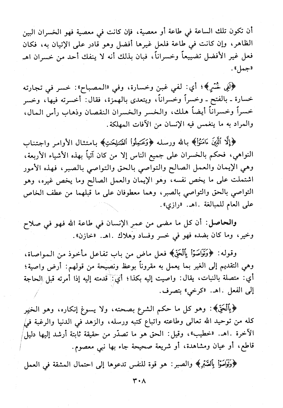 والحاصل: أن كل ما مضى من عمر الإنسان في طاعة الله فهو في صلاح وخير، وما كان بضده فهو في خسر وفساد وهلاك. اهـ. "خازن".