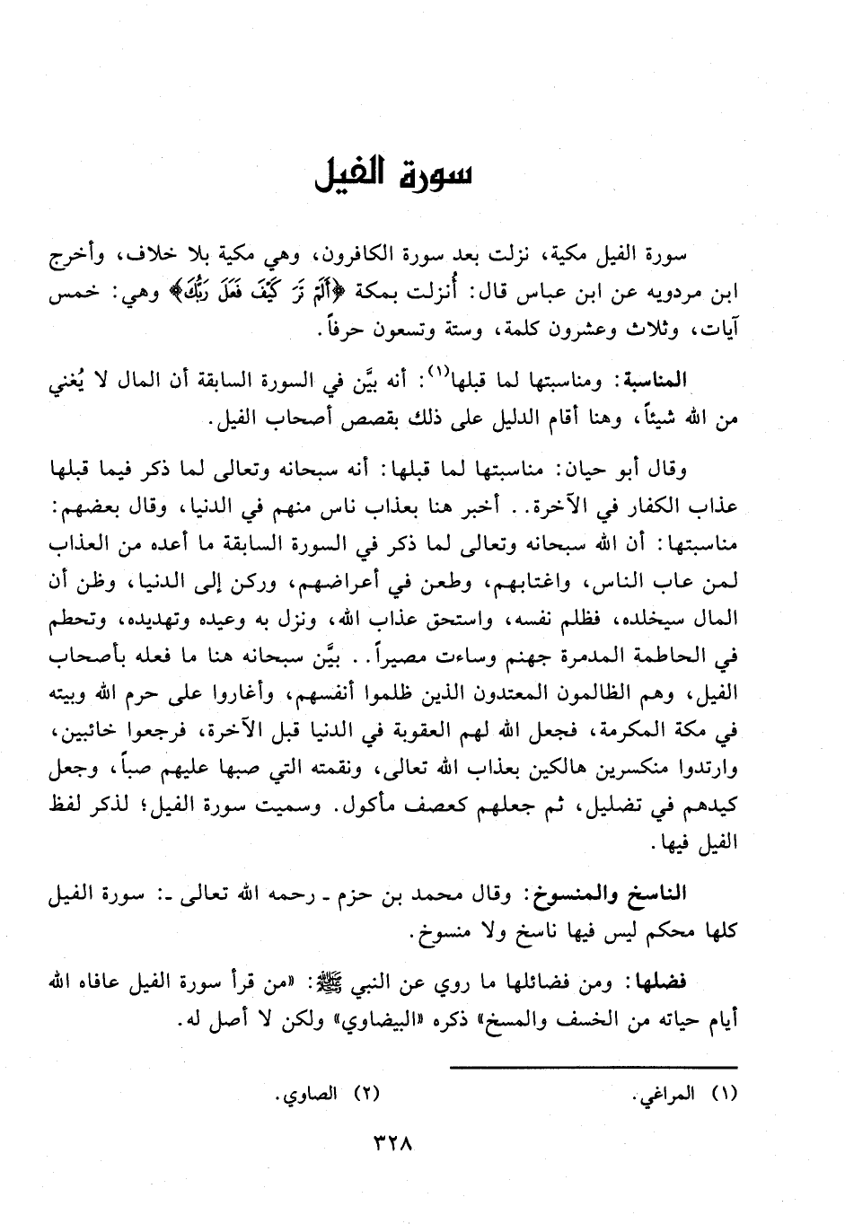 الناسخ والمنسوخ: وقال محمد بن حزم - رحمه الله تعالى -: سورة الفيل كلها محكم ليس فيها ناسخ ولا منسوخ.