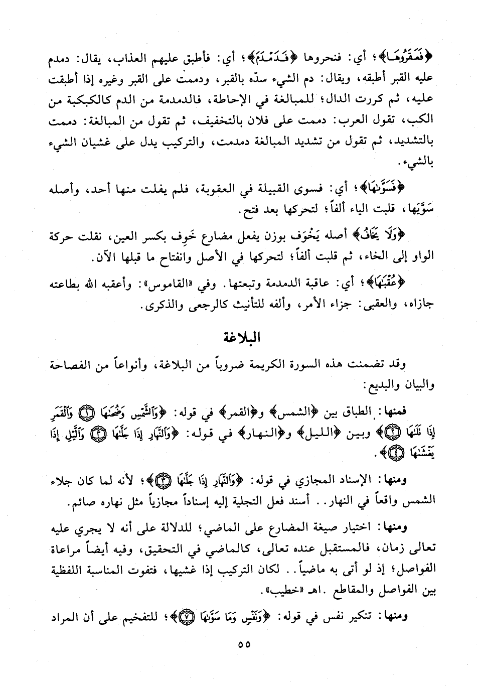 ومنها: الإسناد المجازي في قوله: {وَالنَّهَارِ إِذَا جَلَّاهَا (3)}؛ لأنه لما كان جلاء الشمس واقعًا في النهار .. أسند فعل التجلية إليه إسنادًا مجازيًا مثل نهاره صائم.