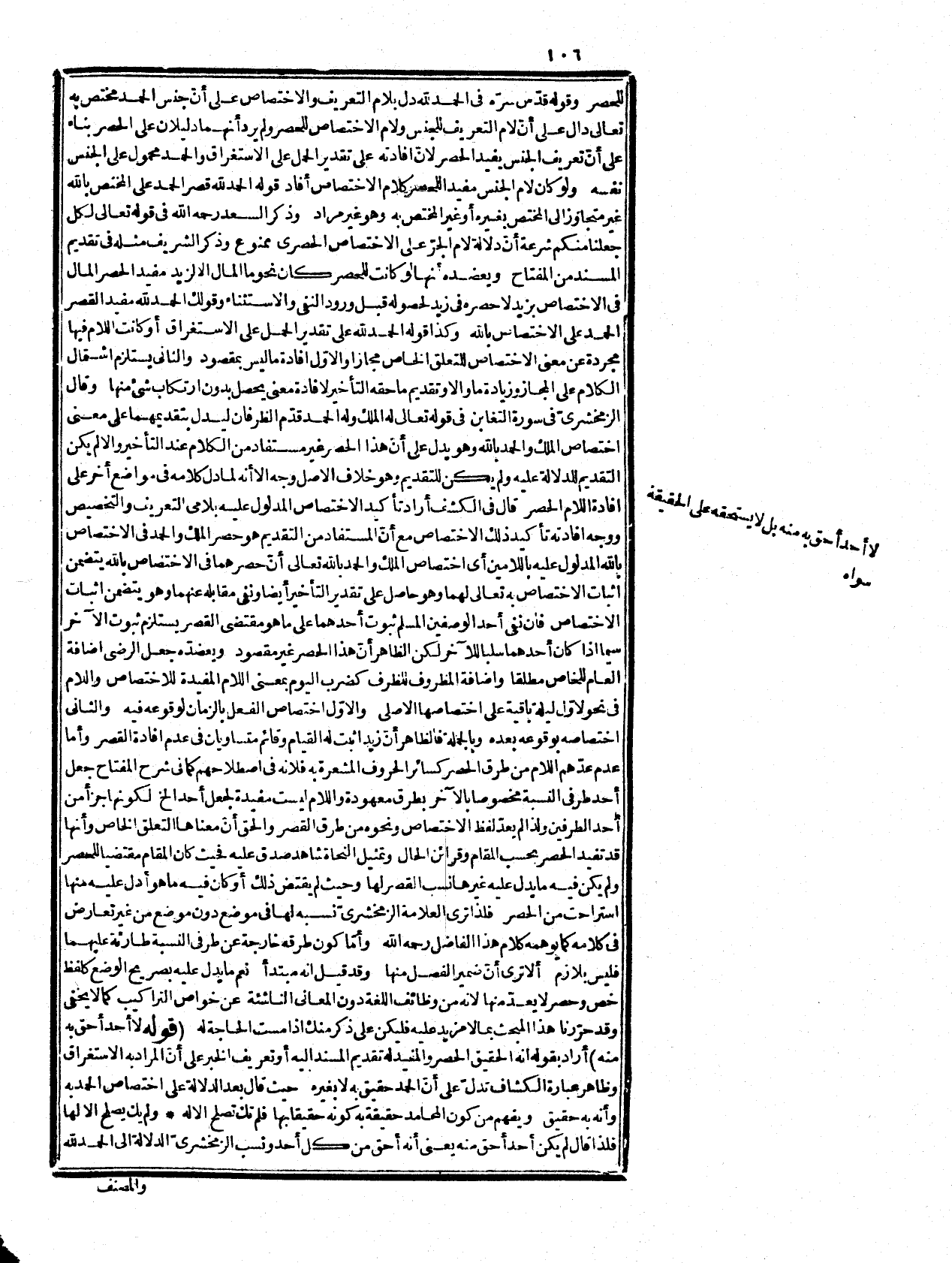 وقيل إنه لم يرد به الحصر لئلا ينافي كونه أحق ولئلا يصير قوله بل لا يستحقه إلخ. لغوا وكون تنزيل استحقاق الغير منزلة العدم بالنسبة إلى استحقاقه لا يستلزم عدم استحقاقه في الحقيقة لا يضرنا إذا دققنا النظر فيه، وقيل: إنه لم يكتف بالقصمر المستفاد منه فزاد هذا للتاكيد والمبالغة ولما فهم من ظاهر نفي الأحقية عن الغير أصل استحقاقه نفاه بقوله بل لا يستحقه على الحقيقة سواه، وقال: على الحقيقة، لأن استحقاقه في الجملة ثابت لا ينكر، وقال قدّس سرّه. المناسب لكون الحمد حقيقا به دون غيره أن يقال: لم يكن غيره حقيقاً بالحمد لأن قوله أحق يدل على أنّ غيره حقيق في الجملة، فكأنه لما أشار أوّلأ إلى انحصار الحمد فيه تعالى نبه هنا كلى أنه ادعائي على ما سبق من التأويل إيماء إلى مذهبه انتهى. والمصنف لما تبعه في أوّل كلامه أضرب عن ذلك بما يدل على أنّ الحصر حقيقي لا ادعائي إيماء إلى مخالفته وفيه نظر، ولا أحق منه كقولهم لا أفضل في البلد من زيد ومعناه أنه أضمل من الكل بحسب العرف إذ يستفاد منه نفي المساواة، وفي شرج المقاصد في بحث تفضيل الصحابة السر فيه أنّ الغالب فيما بين كل شخصين الأفضلية، / أو المفضولية لا التساوي، فلهذا نفى الأفضلية دون المساواة، وانما لم يستحقه سواه على الحقيقة لما قيل من أنّ الأفعال الاختيارية للعباد مخلوقة له تعالى ولا تأثير بل لا مدخل لاختيارهم فيها أصلاً، فلا يستحقون الحمد عليهيا ومعنى الاستحقاق المنفي كونه حقا لازما لهم، وأها الاستحقاق بمعنى ترتبه عليها عقلاً وعادة، فلا نزاع فيه كاستحقاق الئواب، ولا يلزم من نفي الاستحقاق بالمعنى المذكور كون حمد غيرهم مجازاً لأنه لغة الثناء على الجميل الاختياري أي المنسوب إلى الاختيار ونسبته إليه بكونه مسبباً عنه، وله مدخل في حقيقته أو مقارنته له، وأمّا كونه لا اختيار لغير الله عند أهل الحق فيختص الحمد به حقيقة لاختصاصه بالجميل الاختياري، فيلزم أن يكون إطلاقه في حق غيره مجازا ففيه أنه إن أريد نفي الاختيار الذي له مدخل في الفعل، فانمكاؤه مسلم لكن لا يتجه القول بمجازية الحمد إذ أطلق على غيره تعالى، فإنهم قائلون بوجود الاختيار للعبادو بانتساب أفعال العباد إلى الاختيار بالمقارنة، وفي شرح المواتف ليس لقدرة البشر تأثير في أفعالهم بل الله أجرى عادته بأن يوجد في العباد قدرة، واختياراً فإن لم يكن هناك مانع أوجد فيه فعله المقدور مقارنا لهما وساغ إطلاق الاختياري في كلام أهل الحق على أفعالهم، واد أريد نفي الاختيار مطلقا فممنوع.