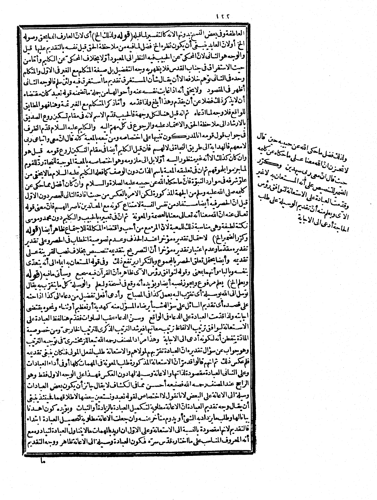 ما ذكره المصتف رحمه الله كما بيناه لك، وان أريد ما يتناولها لعدم قيام القرينة على التقييد يقال: الإعانة المطلقة وان كان بعض أفرادها وسيلة إلى العبادة إلاً أنّ كثيرا من أفرادها يتوسل بالعبادة إليه وهو ما يترتب على العبادة، ويكون نتيجة لها فكونها وسيلة معتبر بالقياس إلى بعض أفراد الإعانة لا إلى جميعها، وتقديمها في الذكر للإشارة لما مّر من أنّ تقديم الوسيلة أدعى للإجابة، وفيه تكلف ظاهر، ولو قيل العبادة وسيلة إلى بعض أفراد الإعانة، ومقصودة من البعض، فتقديمه بالنسبة إلى الأوّل لما ذكر، وبالنسبة إلى الثاني لما سبق كان وجهاً هكذا قرّره الفاضل الليثيّ تبعاً للسيد السند، وهو حاصل ما في شروح الكشاف، ومن لغو القول هنا ما قيل إنّ كلام المصتف رحمه الله مناف لما سيأتي منه في سورة هود في تفسير قوله تعالى: {وَاسْتَغْفِرُواْ رَبَّكُمْ ثُمَّ تُوبُواْ إِلَيْهِ} [هود: 90] ولا يليق الاشتغال به إلاً أنّ فيما قاله هؤلاء هنا بحثاً، وهو أنّ هذا كما لا يتأتى على الثاني أصلاً، أو بغير تكقف لا يتأتى على الأوّل أيضاً على ما يقتضيه كلام المصتف رحمه الله لأنه قسم المعونة إلى ضرورية يتوقف عليها صحة التكليف، وغير ضرورية يتيسر بها الفعل مطلقاً، فإن بنى كلامه هنا على أنّ المراد مجموع المعونتين، أو الأولى أو الأعنم لزم توقفها على العبادة لتوقف التكليف عليها، فلا يتأتى ما ذكر على الأوّل أيضاً إلأ إذا أريد بالمعونة غير الضرورية، وبالمهمات المهمات الدنيوية لا الدينية، ولا ما يشملهما، فيندرج فيه العبادة، وانما نشأ هذا من توهم اتحاد كلام المصنف وكلام الزمخشريّ، وقد عرفت معنى الوسيلة، وأنها ليست بمعنى السبب كما يتوهم وحينثذ، فالظاهر أنّ المراد بالمهمات كلها مهمات كل عبد في أمور دنياه، فإنه المتبادر منها والمعونة كل ما له مساعدة على فعل، أو تحصيل غرض مّا من الأمور المحسوسة فهي بالمعنى اللغوي فإن قلنا إنها عامة شاملة للعبادة، وكذا إن قلنا إنها إعانة على أداء العبادة، فالجواب ما قيل من أن العبادة مع العلم بأنها مما يتوّسل به إلى إجابة طلب الحاجة، وذكر الاسنعانة المطلوب منها المعونة في العبادة المستلزم كونها وسيلة للعبادة قرينة على أنّ العبادة باعتبار بعض أفرادها وسيلة، وباعتبار بعض آخر يتوسل إليها بالاستعانة فلا إشكال، وعلى ما ذهب إليه المصنف رحمه الله لا بد في الخلاص عما مرّ من التزام ما ذكر إلاً أنه محتاج إلى تكقف فتأمّل. قوله: (وأقول لما نسب إلخ) اعترض عليه بأنّ المتبادر منه أنه من خواصه التي تفرّد بها، وهو بعينه مذكور في التفسير الكبير، والحمل على التوارد، أو أنه دل بذلك عمى اختياره له، كما قيل بعيد كما لا يخفى. وقوله: (تبجحاً) تفعل من البجح بالباء الموحدة