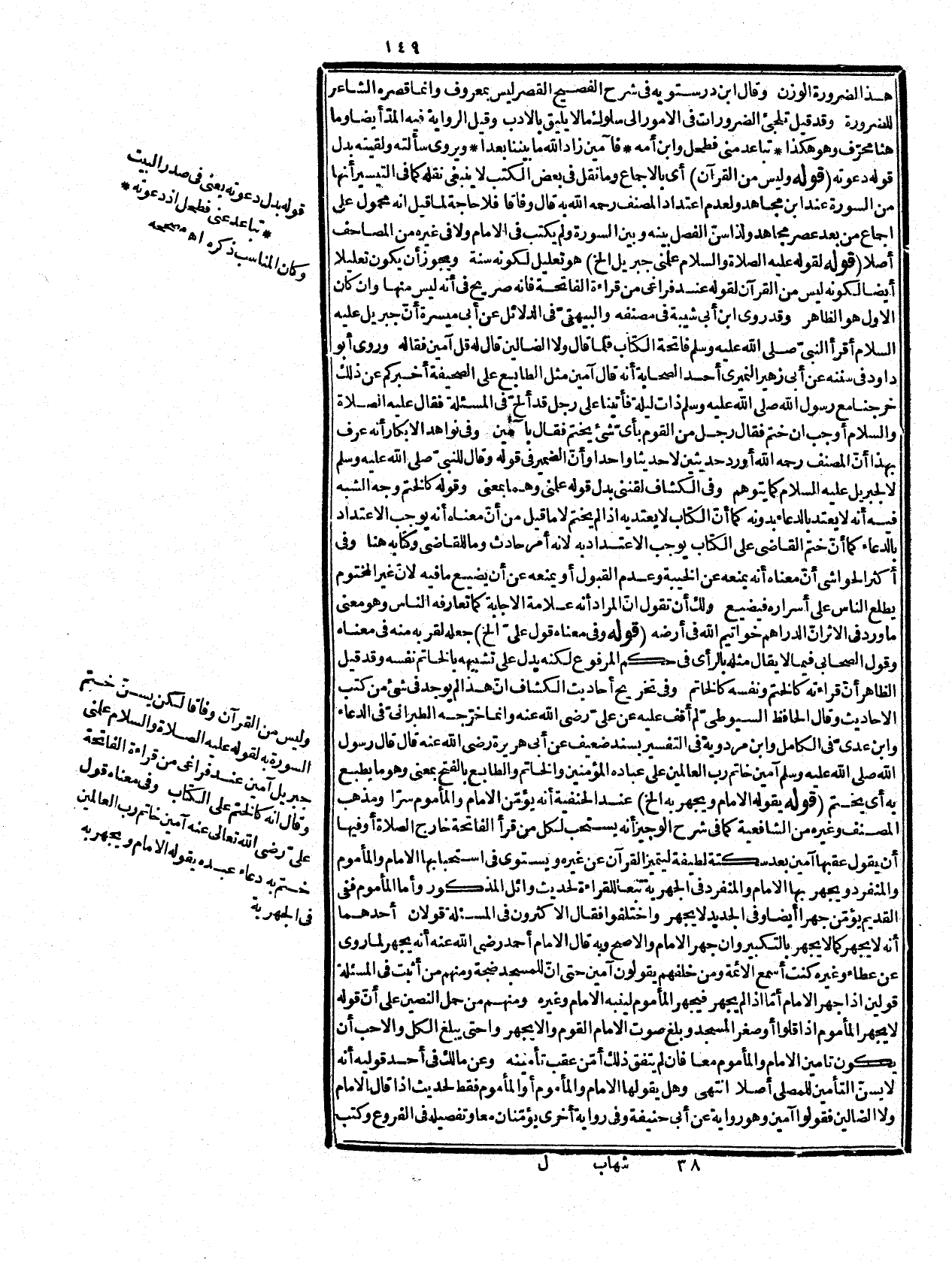 قال الإمام ولا الضايىن فقولوا إلخ وأورد عليه أن الدليل لا يوافق المدعى وهو تأمين الإمام والمأموم معا لا يراده بعد قوله والمأموم يؤمن معه، وليس في الحديث غير تامين المؤتم، وما قيل: إن تأميبئ الإمام قد علم من الأحاديث الأخر لا وجه له وفي أكثر النسخ كما في التيسير والمعالم هكذا، فإنّ الملائكة تقول آمين والإمام يقول آمين: فمن وافق تأمينه إلخ وعليه فلا إشكال أصلاَ.