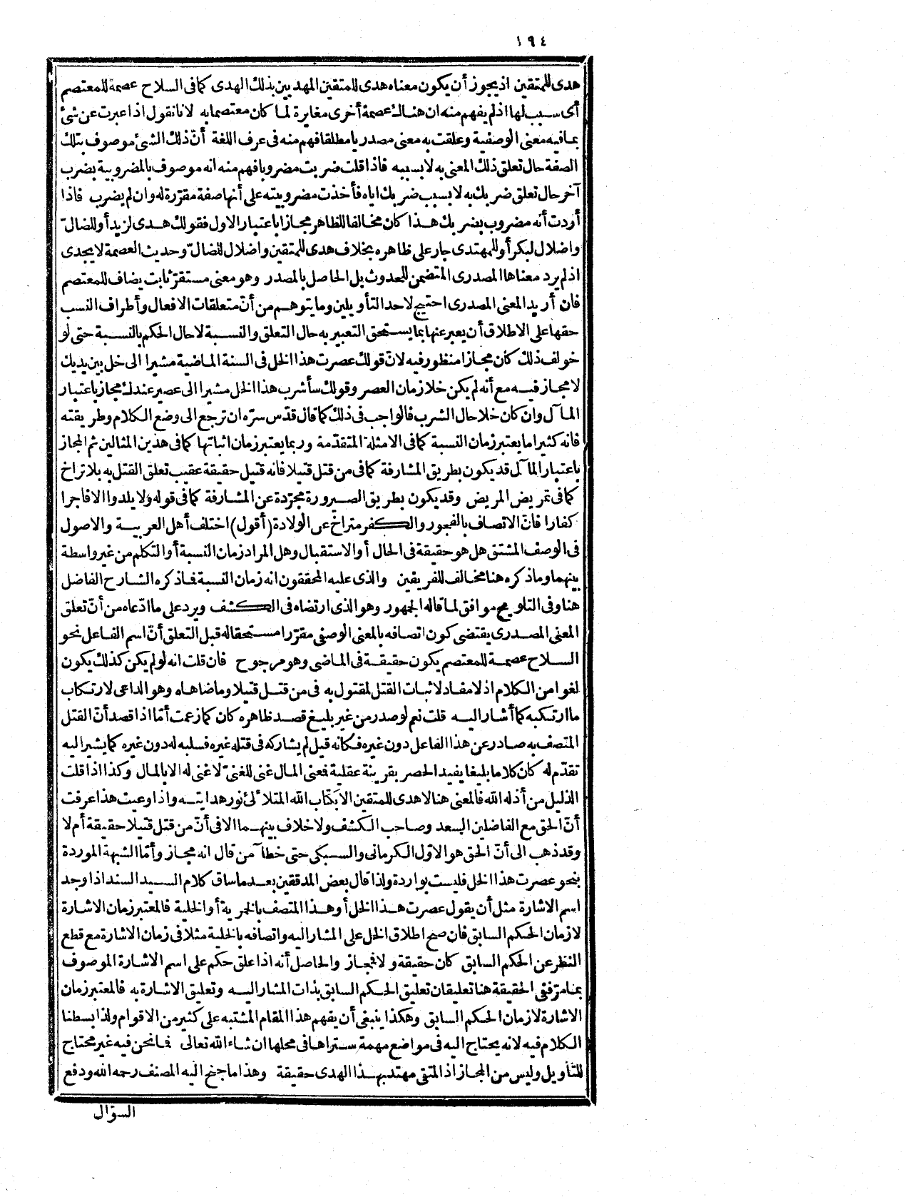 تتصوّر فيه لو أريدت، فالمراد بالمتقين الأنبياء عليهم الصلاة والسلام وهو صحيح ويراد حينئذ من التقوى المرتبة الثالثة، لكنه غير مناسب ومنه يعلم أنّ التقوى بالمعنى الثالث غير مرادة، فبقي من الهداية قسمان نصب مطلق الدلائل، أو السمعي منها وهما يحصلان بالقرآن ومن الهداية قسمان تجنب الشرك وتجنب الآثام، فالصور الباقية أربع، وكلام المصنف رحمه الله في هذا الوجه محتمل لها والمعنى لا ينتفع بالدلائل مطلقاً، أو الدلائل القرآنية إلا المسلمون، أو إلا المجتنبون للمعاصي لعلمهم بما ظهر منها، والأولى أوفق بكلامه، ولا مجاز في النظم على هذا كما توهم. قوله: (بنصبه) قيل هو بضمتين كل ما جعل علامة كما في القاموس، وليس جمعاً هنا وان كان في غير هذا المحل يكون جمعاً لنصاب بمعنى الأصل، وقيل: إنه بفتح النون وسكون الصاد المهملة والباء الموحدة مصدر والمعنى نصب الله تعالى إياه دليلاَ على ذلك لهم دون غيرهم، وفي بعض النسخ بنصه على أنه واحد النصوص، وعليه اقصر بعض أرباب الحواشي، وقال في تفسيره: أي بنص من نصوصه وآية من آياته وليس هذا بتحريف كما قيل، فإنه أقرب مما فالوه نعم هو المناسب للمقام كما سيأتي، وهو الحامل للقائل على ادعاء تحريفه قيل: وهنا نكتة لأنه يؤخذ من قوله {هُدًى لِّلْمُتَّقِينَ} وقوله: {هُدًى لِّلنَّاسِ} [البقرة: 185] أنّ المتقين هم الناس كما قال: