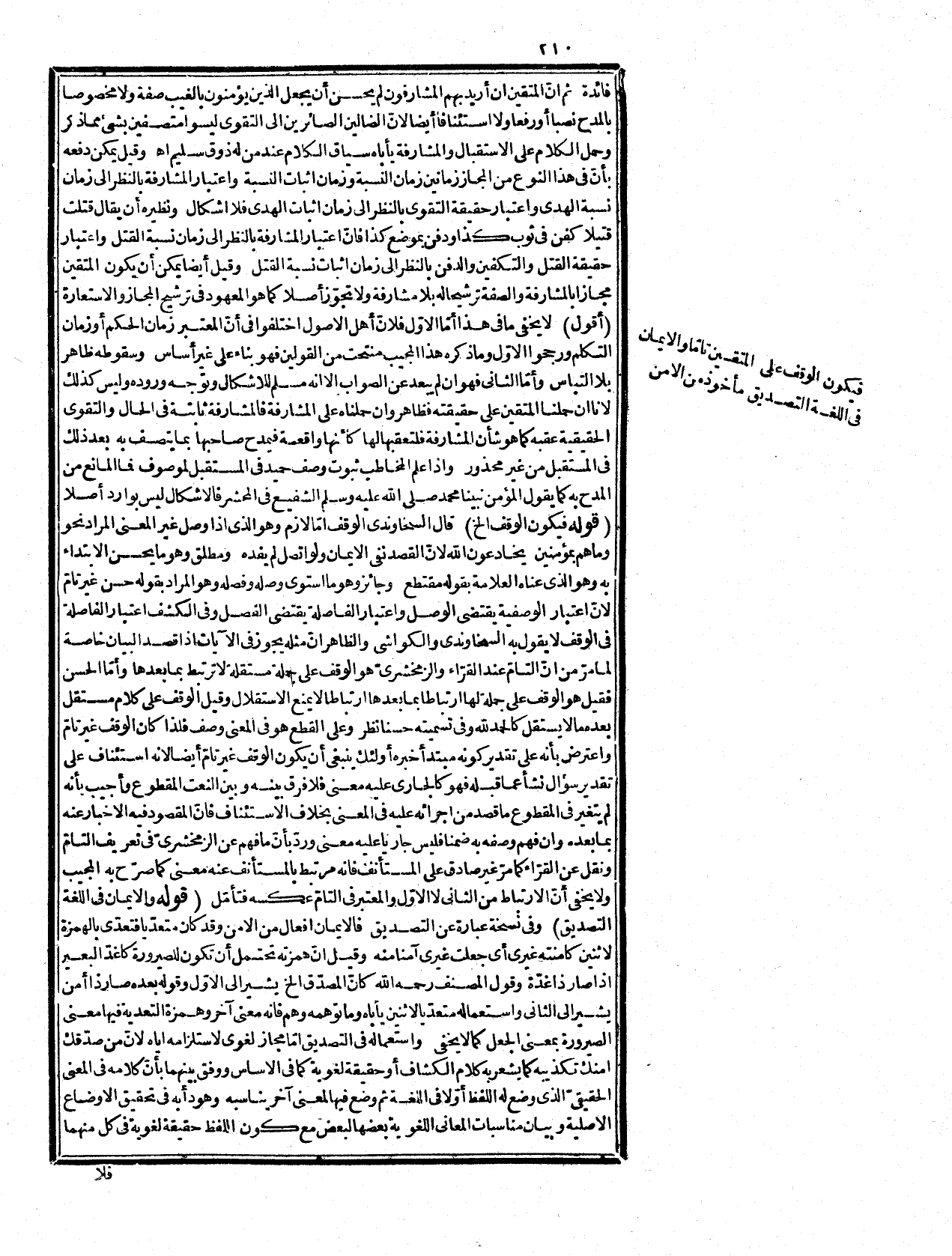 فلا خلاف بين كلاميه وهو الحق ولذا قال المحقق في شرح المختصر: إنه في اللغة التصديق بالإجماع، وقال الراغب: الإيمان التصديق الذي معه أمن، وإذا كان مجازا فالمناسبة بينه وبين المعنى الأصليّ مراعاة وكذا إذا كان منقولاً، ولذا قال المصنف رحمه الله مأخوذ من الأمن. قوله: (كأنّ المصدّق) بكسر الدال أمن المصدق بفتحها، وأتى بكأنّ إشارة إلى أنه قطع فيه النظر عن معناه الأصليّ فلا يخطر ببال من يستعمله إلا نادرا، وهذا دأبهم فيما لا يظهر فيه مراعاة المعنى الأصلي، ولخفائه هنا أنكره بعضهم ولا وجه له وبهذا التقرير سقط ما قيل: هنا من أنه إن أريد به الأمن من تكذيب المصدّق فهو محقق فلا وجه لقوله: كأنّ وان أريد الأمن من تكذيب غيره فهو غير صحيح، وقد يقال ة الأمن في الحال لا يستلزم الأمن في الاستقبال، فيجوز أن يكون ذكر كأنّ باعتباره أو إشارة إلى أنّ الظن في مثله كاف. وقوله:) وقد يجيء بمعنى الوثوق) وفي نسخة " وقد يطلق) وهما بمعنى وهذا أيضاً مأخوذ من المعنى الأوّل. وقوله بمعنى الباء صلة أو
