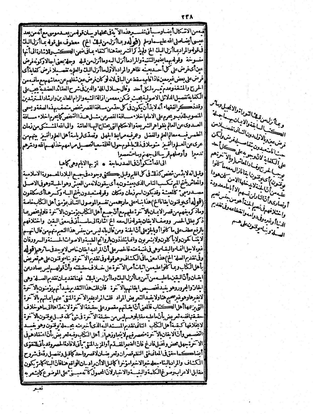 الثاني وهو ما صرّح به الفقهاء والصوفية وكثير من العلماء، وهو ما لا ينظر فيه إلى التجويز والشك بل إلى غلبته على القلب حتى يقال فلان ضعيف اليقين بالموت، وقويّ اليقين بإثبات الرزق، فكل ما غلب على القلب، واستولى عليه فهو يقين وتفاوت هذا قوّة وضعفا ظاهر، ومما قيل عليه أيضاً إنه مناف لما ذكره في تفسير قوله تعالى {لَتَرَوُنَّهَا عَيْنَ الْيَقِينِ} [التكاثر: 7] أي الرؤية التي هي نفس اليقين، فإنّ علم المشاهدة أعلى مراتب اليقين فجعل المشاهد المحسوس يقينا وهو من الضروريّ، فناقض نفسه وليس بوارد أما على القول الآخر فظاهر، وأما على ما اختاره هنا فيدفع أيضاً بأنّ الشيء قبل رؤيته يكون يقينا، فإذا شوهد وصاو ضرورياً انتقل إلى مرتبة من العلم أعلى من الأولى والمعلوم شيء واحد أحواله متعدّدة، كأحوال الآخرة في الدنيا والآخرة غايته أنّ في قوله أعلى مراتب اليقين تسمحاً على أنه بمعنى أعلى من جميع مراتب اليقين، كيوسف أحسن اخوته وظق الفرق بين اليقين والإيقان وهم.