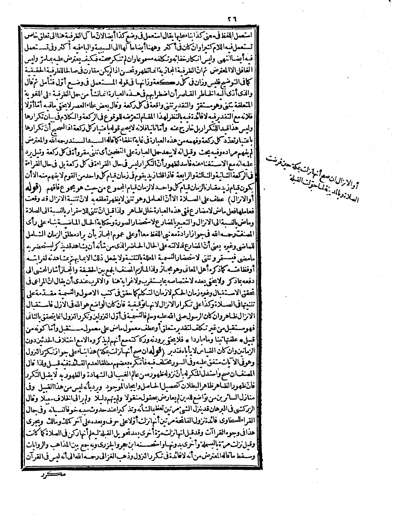مرّة، ولم تنزل أخرى لتكرّر النزول استقلالاً أو لمدارسة جبريل له عليه الصلاة والسلام في كل عام، وهكذا سانر القراآت وهو المشار إليه في حديث: أنزل القرآن على سبعة احرف كلها كاف شاف وهذا أغربها، وكان ابن حجر يرتضيه، ويقرّره في دروسه، ويدفع به الاعتراض بأنّ القرآن فطعيّ التواتر، فكيف يصح إثباته، أو نفيه، بدونه، فيقول: إثباتها ونفيها حينئذ متواتران كسائر القراآت، وقد نقله القرّاء كأبي شامة وغيره، وأطنب في تحسينه السيوطي في حواشيه، فإن قلت لو سلم هذا لجاز على سائر المذاهب الجهر بها وعدمه ولا قائل به، وأيضا لم يعهد في وجوه القرا آت اختلاف في الآيات بل في الحروف وهيآتها، ووقع في بعض حروف المعاني، وهذا سرّ التعبير عن القرا آت بالأحرف في الحديث وتقليلها، وان اندفع به الاعتراض بأنه قرىء بالبسملة في السبعة، وهي متواترة فيما عدا الأدأء، فكيف صح تركها قلت: هذا غير وارد، فإنه يجوز ترجيح أحد المتواترين، وان لم يبلغ غيره مرتبته مع تواتره كما في وجوه القرا آت السبعة، وكونه خلاف المعروف يبعده ولا يبطله.