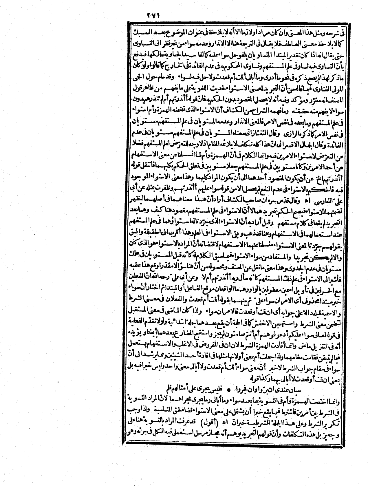 إمّا استعارة أو مستعمل في لازم معناه فرية بلا مرية، وما ذكر من السؤال لا وجه له خصوصا والسورة مدنية وهو صقى الله عليه وسلم قد أمر بالتبليغ قبل الهجرة فكيف يتأتى السؤال، وما نقل عن أبي عليّ صرّح في القصريات بخلافه وقال إنه لا يجوز العطف بأو بعدها حتى قال في المغني إنه من لحن الفقهاء وقال السيرافي في شرح الكتاب سواء إذا دخلت بعدها ألف الإستفهام لزمت أم كقولك سواء عليّ أقمت أم قعدث فإذا عطف بعدها أحد اسمين على آخر عطف بالواو لا غير نحو سواء عندي زيد وعمرو، فإذا كان بعدها فعلان بغير اسنفهام عطف أحدهما على الآخر بأو كقولك سواء عليّ قمت أو قعدت، فإن كان بعدها مصدران نحو سواء عليّ قيامك وقعودك فلك العطف بالواو وبأو وإنما دخلت في الفعلين بغير استفهام لما فيهما من معنى المجازاة فإذا قلت سواء عليّ قمت أو قعدت، ثتقديره إن قمت أو قعدت فهما عليّ سواء اهـ، وهذا مخالف لما نقل عن أبي عليّ رحمه الله، وقوله واستهجن الأخفش إلخ يعارضه قول السيرافي أيضاً البدء بالفعل ههنا أحسن وقد يعادل بالفعلى والفاعل المبتدأ والخبر لاستواء المعنى في ذلك كقوله تعالى {سَوَاء عَلَيْكُمْ أَدَعَوْتُمُوهُمْ أَمْ أَنتُمْ صَامِتُونَ} [الأعراف: 193] وان شئت قلت سواء عليكم أنتم داعون لهم أم أنتم صامتون عنهم وسواء عليكم أهم مدعوّون لكم أم هم