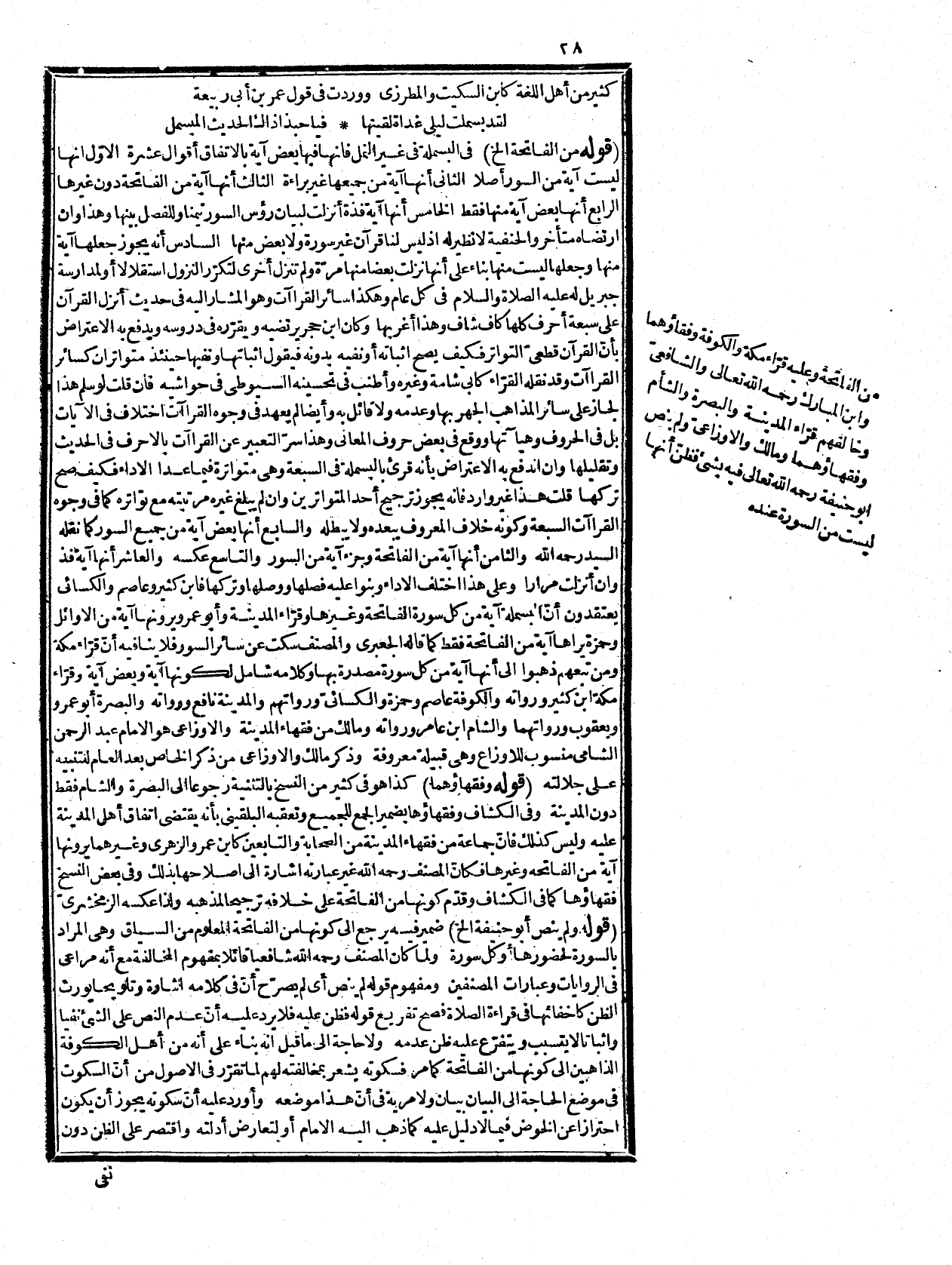 وأنت تعلم أنه على تقدير تسليم القيدين لا يلزم كونها جزأ من الفاتحة لجواز كونها قرانأ