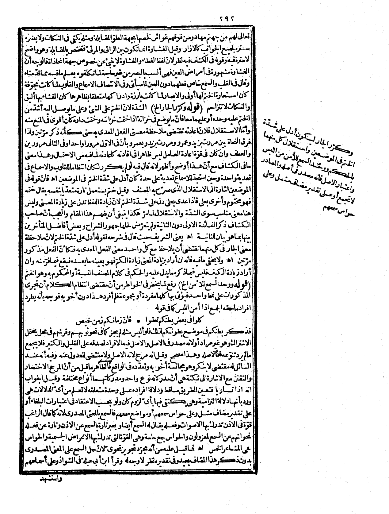 واعلم أنه قال في المثل السائر إنّ مما هو من صناعة البلاغة بمنزلة عليته اختلاف الألفاظ، فمنها ما لا يحسن استماعه الآ مجموعاً كاللب، فلذا لم ترد في القرآن مفردة لأنّ الجمع فيها أحسن وبضدّه ما ورد مفرداً ولم يرد مجموعا كالأرض، وأمّا المصادر فالإفراد فيها هو الأحسن ومما جاء منها مجموعاً قول عَنترة: