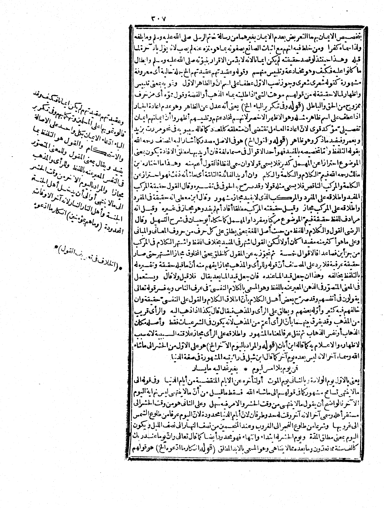 (أقول) هذا ملخص القيل والقال لا مخلص الإفهام من شرك الإشكال، وتلخيص تخليصمه أنه يرد أولا على ما قيل: من أنّ انخراطهم في سلك إلخ ما سمعته آنفا أنه إنما يصح لو قيل: وما هم من المؤمنين إذ ليس قوله {وَمَا هُم بِمُؤْمِنِينَ} [البقرة: 8] مثل قوله: وما هم من المؤمنين لأنّ هذا يفيد أنهم ليسوا من عدادهم، وجملتهم على ما قرّروه في مثل قوله {وَكَانَتْ مِنَ الْقَانِتِينَ} [التحريم: 12] حيث عدل عن كانت قانتة الأخصر الأظهر إليه لما ذكر على ما في شرح المفتاح ويجاب عنه بأنّ المبالغة من تقديم الفاعل وإيلائه حرف النفي لأنّ نفي فاعليتهم يستلزم نفي صدور الفعل منهم على أبلغ وجه سواء جرّ الوصف بالباء أو بمن فلا يرد عليهم شيء كما توهم ويرد عليه ثانياً أنه قال: فليس في هذه الاسمية تقديم لقصد الاختصاص أصلاً، وقد عرفت أنه في النظم أثبت الإيمان للمؤمنين على أتم حال ونفي عن هؤلاء ذلك بأبلغ وجه ولا اختصاص أقوى مصتفهذا، ولا بدّ من القول به للزومه لتثليث القسمة السابق، ويدفع بأنّ المراد أنه لم يقصد الحصر، وإنما قصد تأكيد نفي الإيمان عن هؤلاء وهو لا ينافي صحة الحصر في نفسه لأنّ الكلام البليع كثيرا ما يلوح بأمور لازمة للمقام، وإن لم تقصد منه بالذات، ويرد هنا ثالثا أنه قال في الكشاف فقد انطوى تحت الشهادة عليهم بذلك نفي ما انتحلوا إثباته