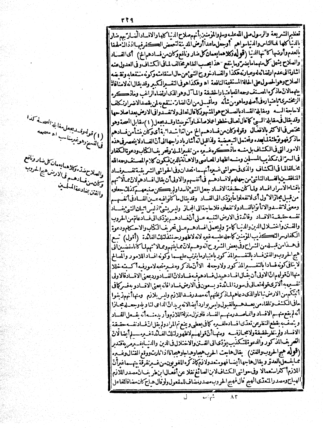 وقال قدّس سرّه تبعاً لغيره: المراد بقوله هيج الحروب هو اللازم، لأنّ المتعدي إفساد لا فساد، وقد عرفت ما فيه وأنه يجوز فيه التعدي بالنظر إلى الماس كما يجوز اللزوم نظرا لأصله، والعجب ممن ارتضى تبعاً له لزوم اللزوم، ثم قال والقول بأنّ الأنسب من إفسادهم لأنّ الهيج ههنا متعد بقرينة قوله بمخادعة المسلمين، وممالأة الكفار أي معاونتهم على المسلمين إفساد وفساد كما لا يخفى على أهل السداد، وغفلة عن قوله: فإنّ ذلك إلخ. ولا يخفى ما فيه من الخللى الغني عن البيان. قوله: (فإن ذلك يؤدّي إلى فساد ما في الأرض إلخ) في قوله يؤدّي إشارة إلى ما فيه من مجاز الأوّل كما مز تقريره، وقيل المراد من الفساد في الأرض هيج