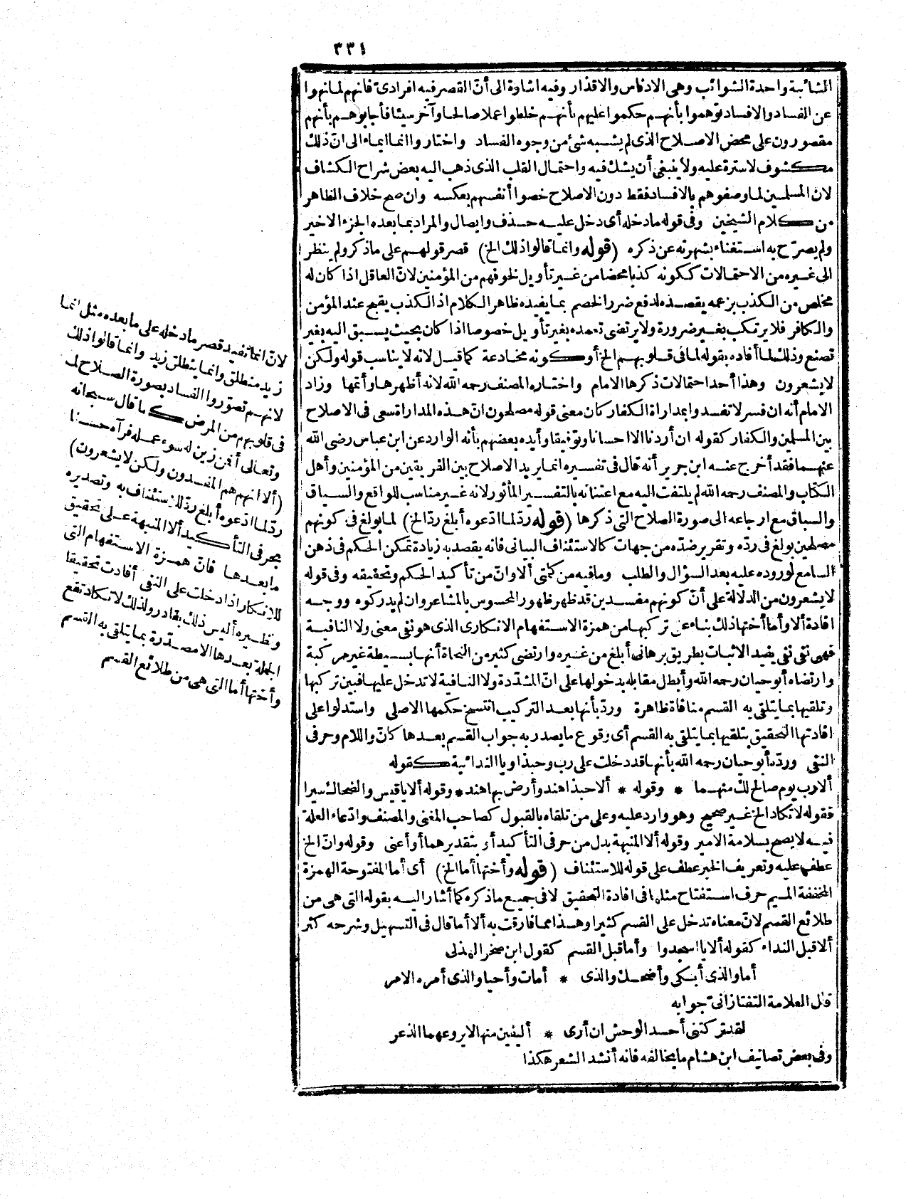 لما يذمّ من أفسد عن علم والجواب لا يشعرون} أنّ أمرهم يظهر للنبيّ لهم مفسدون فقوله {؟ ألا إنهم هم الفساد صلاحا أو المراد أنهم لا كما ذكره السمرقنديّ في تفسيره. ل! مكن منه مذموم أيضاً، بل قد يقال 5 الآية حجة على المعتزلة في أنّ للزم بدون المعرفة، فإنّ الله أخبر أنّ حصقة العلم شرطا للتكليف، ولا علم عنه، فإذا لم يكن النهي قائما عليهم ليام آلة العلم، والتمكن من المعرفة عة على مسئلة مقارنة القدرة للفعل ممام النصح والإرشاد إلخ) فيه إشارة لطهر منه أنّ القائل المؤمنون لا الله شارة إلى التخلية بالخاء المعجمة على أنّ الأعمال داخلة في كمال###