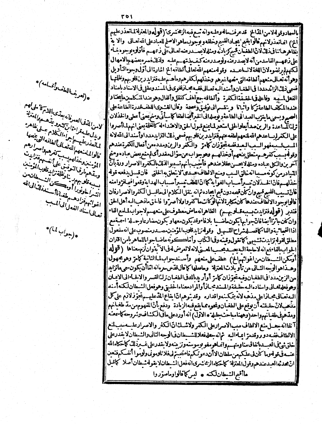 وقال قدس سرّه- لم ئيردّ الزمخشريّ-: إنّ هذه الإضافة تدل وضعاً على أنّ الطغيالط بإيجاد العبد لا بإيجاده تعالى حتى يرد عليه أنّ الأمور المخلوقة له تعالى إذا قامت بالعباد كالبياض تضاف إليهم إضافة حقيقية لا مجازية لأدنى ملابسة كما توهم فلا دلالة للإضافة على إيجاد العباد لها بل أراد أنّ الطغيان من الأفعال التي اكتسبوها باختيارهم استقلالاً، ولا تعلق لها به تعالى فحقه أن يضاف إليهم لا إله إشعارا بهذا الاختصاص لا بالاختصاص باعتار المحلية والاتصاف فإنه معلوم لا حاجة فيه إلى الإضافة، ولولا قصد هذا عريت عن الفائدة، ومثله معتبر في الخطابيات عند البلغاء، وردّ بأنّ هذه الخطابيات لا تعارض البراهين القاطعة بأنه لا خالق سواه وأنه لا يقع إلا ما أراده، وقيل عليه: إنّ الزمخشرقي عنى أنّ إثبات اللغو في كلام الله تعالى وترك اعتبار الدلالات الخطابية المعتبرة عند البلغاء مما لا يليق بمقام الإعجاز، وإن بنى عليه تأييد مذهبه وردّ مذهب أهل السئة لئلا يلزم هذان الأمران المنافيان لأسلوب الحكيم فلا يكفي في دفعه أنّ الدلالات الخطابية لا تعتبر مع الدليل القاطع الذي ذكره، فالجواب أنّ فائدة الإضافة الإشارة إلى أنّ نسبة الطغيان إلى العباد ليست بمجرّد المحلية بل باعتبار كسبهم إياه، وإن كان بخلق الله تعالى وارادته، وأيضاً يجوز أن تكون الإضافة للعهد على أنّ المراد بطغيانهم الطغيان الكاملى، ولا يخفى أنه فرّ من السحاب، ووقف تحت