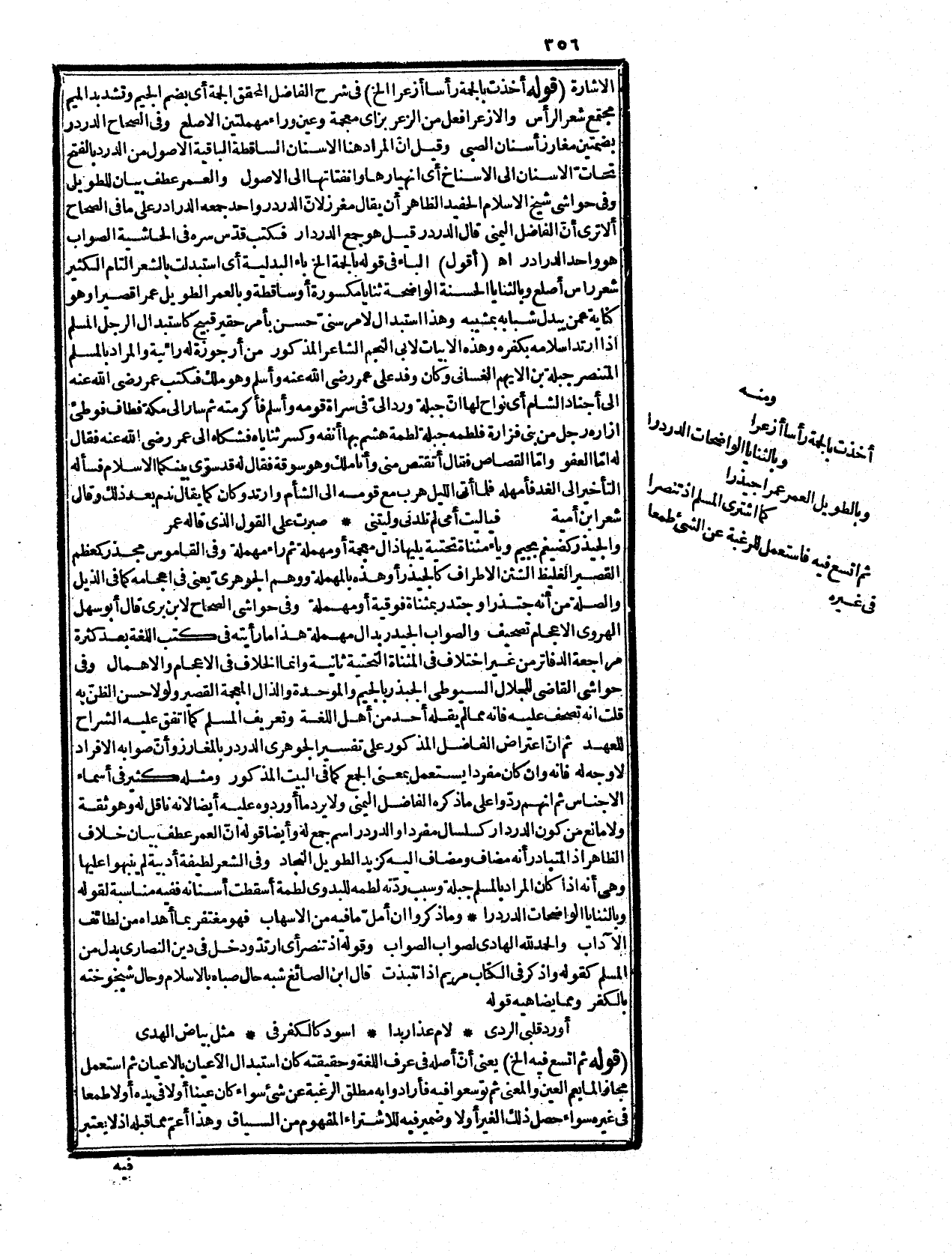 بلا شبهة، ثم استبدلوا به الضلالة فلا مجاز في ثبوت الهدى لهم بل في لفظ الهدى إن لم تكن الفطرة مندرجة في حقيقته، وهو ردّ على قول الشارح المحقق جعل تمكنهم من الهدى بعد التكليف به بمنزلة تملكهم إياه فيكون التجوز في نفس الهدى حيث أريد به التمكن منه، أو في نسبته إليهم حيث استعير ثبوته لهم لتمكنهم منه وإذا أريد الهدى الذي جبلوا عليه فلا مجاز أصلا أو هو في الهدى فقط إن كان، وقد قيل عليه إنّ أوّل كلامه يشعر بأنّ الإسناد مجازي، وآخره بأنّ التجوّز لغوي وكلاهما غير ظاهر وصحة الكلام مقتضية لإسناد الضلالة والهدى إليه. (أقول) لله در الفاضل المحقق فيما أبداه فإنّ العلامة لما قرّر التجوّز في الإشتراء، وأنه بمعنى الاختيار والاستبدال فورد عليه أنّ استبدال الشيء بشيء يقتضي أن يدخل كل منهما تحت حيازة تصرفه، وهم لم يجوّزوا الهداية في الواقع كما ينادي عليه قوله، وما كانوا مهتدين أجاب عنه بوجهين إمّا جعل التمكن من الشيء بمنزلة حصوله، أو يراد بالهدى الهدى الجبليّ فإنّ كل مولود يولد على الفطرة فأشار المحقق رحمه الله إلى أنه إذا نزل التمكن منزلة التملك يجوز، أن يقال إنّ ما بالقوّة جعل كأنه بالفعل فالتجوّز في الهدى كما يسمى العصير مسكرا، أو في النسبة أي نسبة الفعل إلى مفعوله لأنّ معناه بدّلوا الهدى أي بدلوا تمكنه لهم فتركوه، والتجوّز في الإسناد بناء على الظاهر من لفظ الإشترإء وهو لا ينافي التجوّز اللغوي في الظرف كما مرّ، ول! في التجوّز في النسبة من الخفاء أخره، وقوله إنه إذا أريد ما جبلوا عليه فلا مجاز يعني به أنّ إطلاق الهداية على ما في الجبلة، وهو أمر معنوي غير محسوس يكفي في تحقق حقيقة ثبوته في نفس الأمرظهر أم لا كما سيأتي بيانه، وإن قيل إنه لا بد في تحققه من قيامه بهم بالفعل إذ لا يسمى ال! لم قبل وجوده في الذهن مثلا علما، والهدى ليس كذلك فهو مجاز، وهو الظاهر فإنكاره قدس سرّه التجوّز فيه، وادّعاء أنّ كلام الكشاف يأباه لا يسلم بسلامة الأمير، ثم إنه على التجوّز الظاهر أنه من قبيل ضيق فم الركية وبما قرّرناه لك ظهر اندفاع ما أورده عليه من إضطراب كلامه كما سمعته آنفاً، وأمّ كلام المصنف رحمه الله فتقريره إنه لما جعله مجازاً في المرتبة الثانية عن الرغبة عن الشيء بتركه طمعاً في تحصيل غيره، وهم