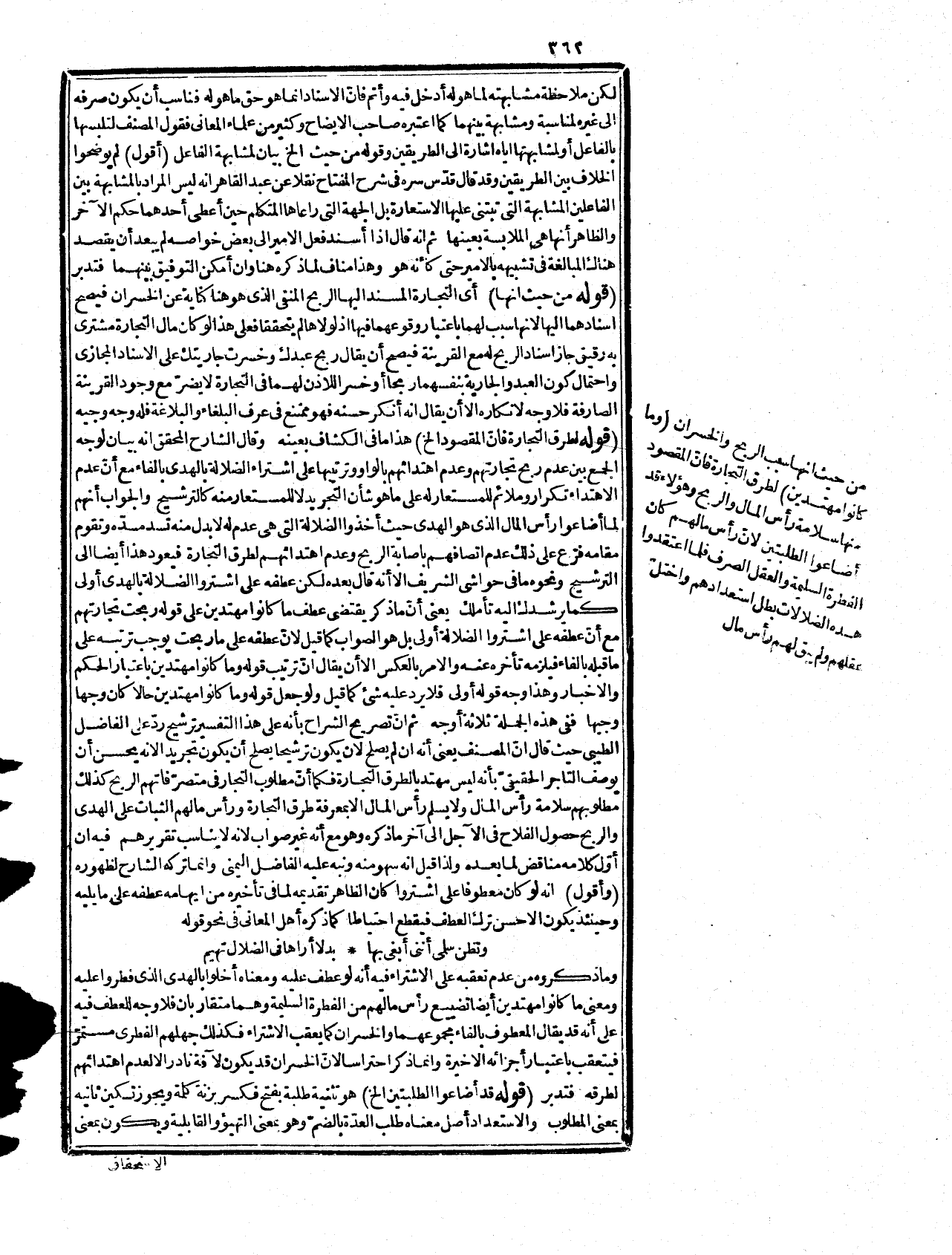 إذا بلغته ووصلت إليه. قوله: (لما جاء بحقيقة حالهم إلخ) أي لما ذكر صفات المنانقين عقبها بضرب المثل لزيادة إيضاحها فإنه إذ تخيل من المعاني شيء لم يصل إلى التحقيق أبرزه المثلى في معرض المحقق، وكذا إذا توهم ولم يتيقن أخرجه في صورة المتيقن، ولو غاب عن الحس صيره كالمحسوس المشاهد، وربما تكون المعاني التي يراد تفهيمها معقولة صرفة فالوهم ينازع العقل في إدراكها حتى يحجبها عن اللحوق بما في العقل فبضرب الأمثال تبرز في معرض المحسو*سات فيساعد الوهم العقل في إدراكها ولهذا تضرب الأمثال لمن يخاصم لأنّ خصومتة بسبب إنقياده للوهم وعصيان العقل، فإذا اتفقا زالت الخصومة لا محالة وأوقع أفعل تفضيل من الوقع، وهو القرار والثبات أي أشد تمكناً في القلب، وأقمع من القمع وهو الصرف والمنع أو القهر والتذليل، وفي القاموس قمعه قهره وذلله كأقمعه وفلاناً صرفه عما يريده، وأصله ضرب الرأس بالمثقل فكني به عما ذكر وصار حقيقة فيه، والألد أفعل تفضيل من اللدد وهو شدة الخصومة وفسره بعضهم هنا بالخصومة وفسر الخصم الألد بالخصم الأخصم كليل أليل وهو سهو منه، والحال الصفة والقصة والحديث وكل منها صحيح هنا وفي هذا إشارة إلى أنّ ما سبق إلى هنا المقصود منه توبيخهم وبيان حالهم وإن احتوى على استعارات وتجوّزات لأنّ المثل في محاورتهم يضرب بعد تقرير المراد، وما قيل من أنه يفهم من هذا إنّ ما ذكر هنا أوّل مثل ضرب في شأنهم، وأنّ بيان أحوالهم إلى هنا حقيقة، وليس كذلك لأنّ قوله {أُولَئِكَ الَّذِينَ اشْتَرَوُاْ الضَّلاَلَةَ} تمثيل لحالهم بحال التاجر الذي لا يدري أمور التجارة، وكذا قوله {؟ الله يستهزىء بهم ولا محيص عنه} إلا بأن يتكلف فيقال ليس المقصود بما ذكر هنا إفادة أمر زائد على ما سبق بل القصد إلى تقريره، وتوضيحه على وجه بديع ناشىء من قلة التدبر، وعدم الفرق بين المجاز والمثل وسيأتيك عن قريب تحقيقه وقوله (ولأمر مّا إلخ) أي لأمر عظيم بليغ كثر ضمرب الأمثال، وفي الإنجيل سورة تسمى سورة الأمثال والمراد بهذا الأمر ما قرّرناه لك 0 قوله: (والمثل في الأصل بمعنى النظير إلخ) قال الراغب: أصل المثول الانتصاب، والممثل المصوّر على مثال غيره يقال مثل الشيء أي انتصب وتصوّر، ومنه الحديث: " من أحب أن