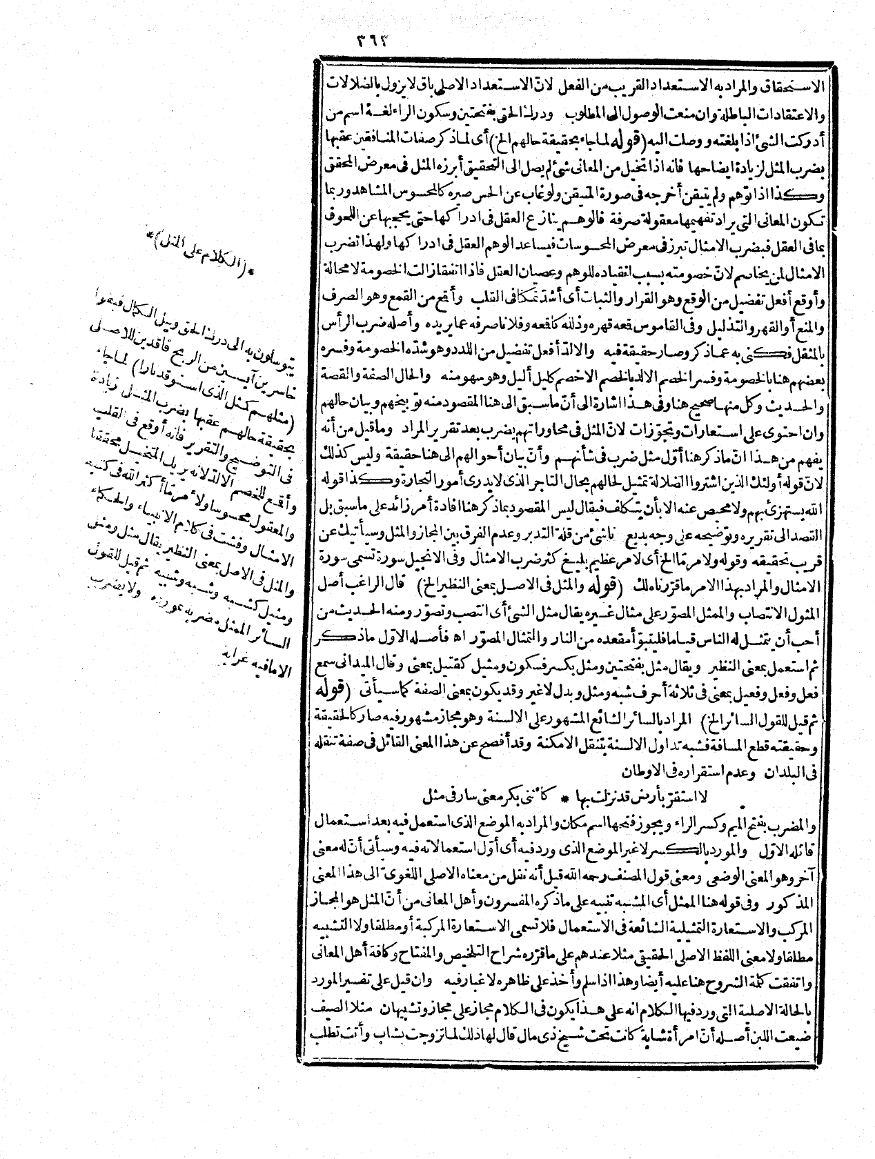 وابن هلال، وقد ذكروا فيها أمثالا كثيرة مستعملة في معناها الحقيقي، كقولهم السعيد من اتعظ بغيره، وأمثالا مصرحا فيها بالتشبيه كقولهم لمن يخاف شرّه ويشتهي قىهـ به، كالخمر يشتهي شربها ويخشى صداعها، إلى غير ذلك مما لا يحصر أمثاله فكيف يشترط فيها أن تكون استعارة مركبة فاشية.