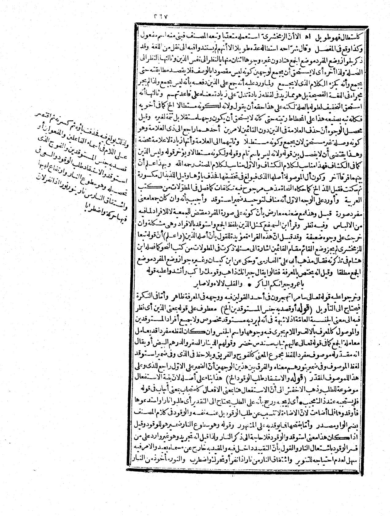 (أ-! ول) قد تقرّر في الحكمة أنّ الضوء عرض، وكيفية مغايرة للون وليس عبارة عن ظهور اللون كما ذهب إليه بعض الحكماء وليس أجساما صغاراً تنفصل من المضيء فتتصل بالمستضيء كما ذهب إليه بعض الحكماء، وان كان قد يشاهد للضوء بروق، وتلألؤ على الجسم حتى كأنه يفيض منه ويضطرب مجيئا وذهابا بحيث يكاد يستره فإن كان ذاتيا كما للشمس سمي شعاعا، وان كان عرضيا كما للمرآة سمي بريقا، وهذا ما أشار إليه قدّس سرّه، ثم إنه إذا تعلق الظرف بفعل قاصر صار ظرفا لفاعله بالذات 6 ولحدثه بالتبع كما في قام زيد في الدأر، وهذا غنيّ عن البيان فإن كان ذلك الحدث له أئر متعد كالإشراق والإصباح فهل يشترط في تحقق النسبة للظرفية ذلك أيضا فلا بدّ من قولك أشرق كذا في لو كذا من كون الإشراق، والمشربن فيه أو يكفي وجود أثره فيه، وإن لم يوجد هو بذاته كما في الأفعال المتعدّية فإنك إذا قلت رميت الصيد في الحرم يكون حقيقة