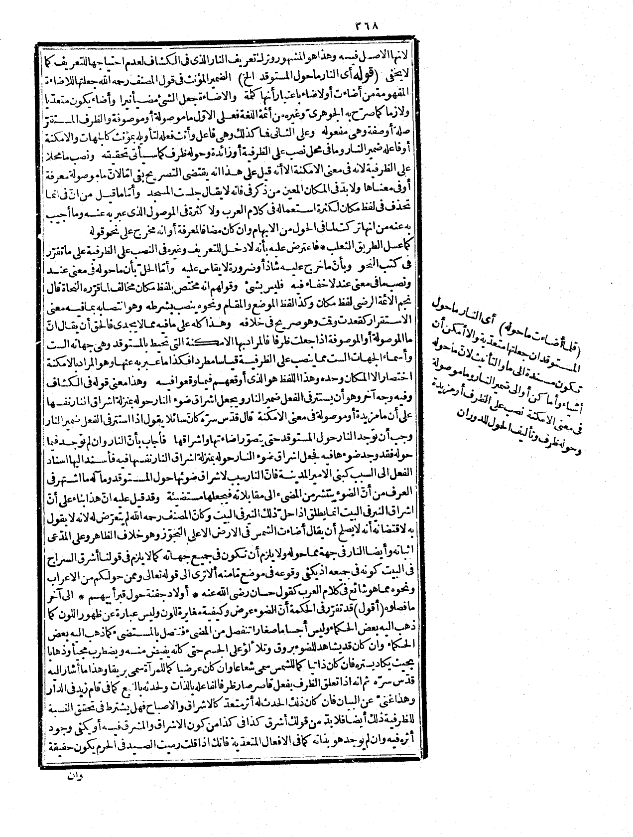 وان لم يكن الرامي في الحرم على ما ستسمعه إن شاء الله تعالى مفصلا في سورة الأنعام فالعلامة في الكشاف ارتضى الأوّل وجعل ما خالفه مجازا وقياسه مع المتعدّي قياس مع الفارق لأنّ المفعول مظروف حقيقة وان كان لك أن تقول إنه حقيقة عرفية، وفي كلامهم إيماء إليه، وقد يقال إنه لذلك تركه المصنف رحمه الله تعالى، وقياس البيت والبلد على الحول إذا كان بمعنى الإحاطة والجهات غير ظاهر، وقوله على الظرف قيل إنّ تخصيص الإضاءة بما حول المستوقد في الوجهين الأوّلين ظاهر لأنها لا تتعلق بمحل المستوقد وأمّا على الظرفية فغير ظاهر، وليس بشيء لأنّ نحله نفسه على كل حال لا تتعلق به الإضاءة كما قال الشاعر: