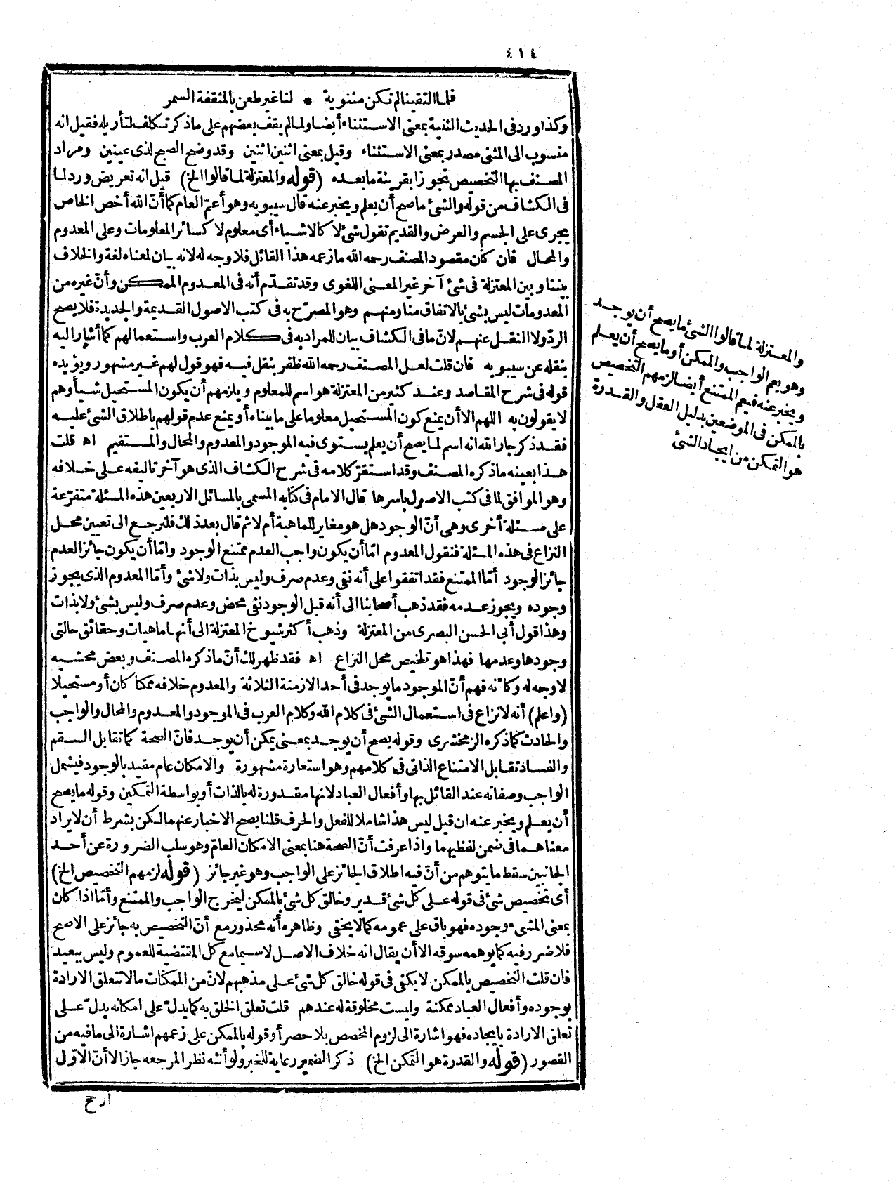 الإرادة، وقيل هي مبدأ قريب للأفعال المختلفة، وهذا فيما قيل يقتضي أنها ليست نفس التمكن بل مبدأة ومقتضيه وبينهما مخالفة، والذي قاله المتكلمون إنها صفة موجودة ثابتة له تعالى، والتمكن أمر اعتباريّ لا وجود له في الخارج فهو معناها لغة وذاك اصطلاحيّ، وقيل إنّ كلام المصنف رحمه الله إشارة إلى أنّ فيها اختلافاً هل هي صفة إضافية أو ذاتية، وقيل إنّ قوله هو التمكن إلخ يقرب من مذهب المعتزلة، ويشعر بأنّ القدرة ليست صفة حقيقية والتفسير الثاني مذهب الأشاعرة، والثالث يشعر بأنها من الصفات السلبية والتحقيق ما في المسائل الأربعين للإمام من أنّ الصفات ثلاثة أقسام صفات حقيقية عارية عن الإضافات كالسواد والبياض وصفات حقيقية يلزمها إضافات كالعلم، والقدرة لأنّ العلم صفة حقيقية يلزمها إضافة مخصوصة إلى المعلوم، وكذا القدرة صفة حقيقية لها تعلق بالمقدور، وذلك التعلّق إضافة مخصوصة بين القدرة والمقدور وإضافة ونسب محضة ككون الشيء قبل غيره أو بعده فمن فسرها بالمبدا ونحوه نظر إلى حقيقتها، ومن فسرها بغيره رسمها بلوازمها فلا مخالفة في التحقيق، ثم إنه قيل عليه أنه لا يتناول التمكن من إعدامه بعد وجوده ولا التمكق من إبقاء الممكن، وهو معتبر كما سنراه إلا أن يقال التمكن من الإيجاد يستلزم التمكن منهما استلزاماً ظاهراً، فلذا اقتصر عليه مع شرفه، فعلم ضعف ما قيل من أنّ المقدور إن أريد به ما تعلقت به القدرة لا يكون إلاً موجودا، وان أريد ما يصلح لأن يتعلق به يكون معدوما وهو المعنيّ بقولهم إنه تعالى قادر على جميع المقدورأت، وأنّ مقدوراته غير متناهية يني أنها صفة قديمة قائمة بالقادر قبل الإلجاد لمقدوراته وبعد الإيجاد والبقاء فتدبر. قوله: (وقيل صفة تقتضي التمكن) هذا هو القول المرضي فكأنه لم يقصد تمريضه، والمراد التمكن من الإيجاد والإعدام والإبقاء كما سمعتة آنفاً، وقوله وقيل: قدرة الإنسان إلخ فيه إشارة إلى أنّ ما قبله عامّ فيهما أو خاص بالله، والظاهر الثاني ووجه تمريضه أنه وإن فرق بين القدرتين إلا أنه يقتضي أنّ القدرة من الصفات السلبية، والذي عليه المحققون أنها صفة ثبوتية ذاتية، والعجز يضادّها وينافيها فالقائل به اختاره تقليلاً للصفات الذاتية أو نفياً لها، ثم إنّ الهيئة إنما تستعمل إذا أطلقت في المحسوسات، والفعل شامل للإيجاد والإعدام كما مرّ وصاحب هذا القول هو الراغب كما صرّح به في مفرداته فتأمّل. قوله: (والقادر هو الذي إلخ) هذا يحتمل أن يكون كلاما مستأنفا، ويحتمل أنه من تتمة القيل فكلاهما من كلام الحكماء لأنهم لا يقولون بإثبات صفات زائدة كالمعتزلة على ما حقق في الكلام، ويخالفون المتكلمين في أن القدرة عبارة عن صحة الفعل، والترك ويقولون هي عبارة عن كونه بحيث إن شاء فعل وان شاء ترك، أو لم يفعل ومقدم الشرطية الأولى بالنسبة إلى وجود العالم دائم الوقوع، ومقدم الشرطية الثانية بالنسبة إلى وجود العالم دائم اللاوقوع، وصدق الشرطية لا يستلزم صدق طرفيها ولا ينافى كذبهما ودوام الفعل، وامتناع الترك بسبب الغير لا ينافي الاختبار عندهم، وفي نسخة وان شاة لم يفعل بدل قوله وان