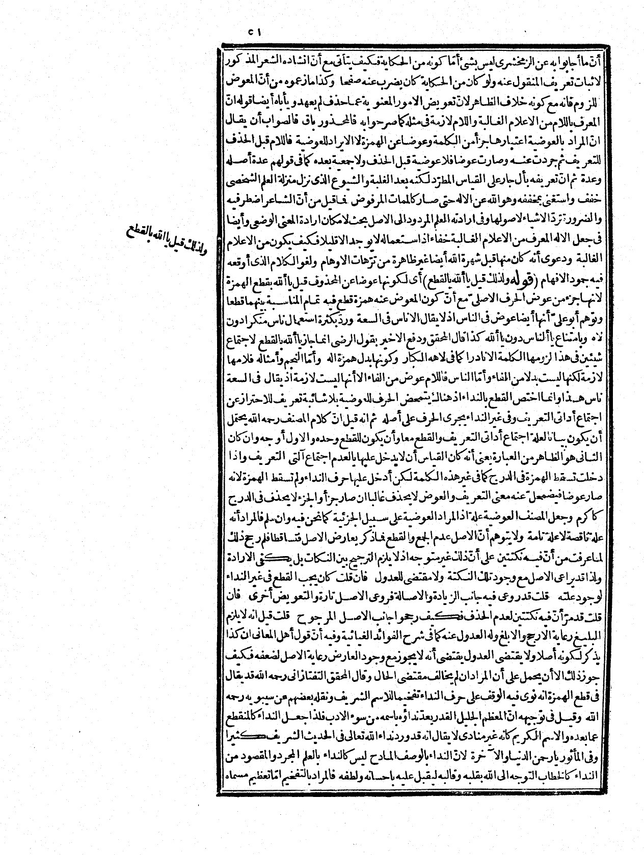 بالتأني في دعائه أو اسمه بإثبات حرف المد وتفخيم لامه وإبقاء حروفه، ولو وصل فات بعض هذا والثاني هو المراد والأمر فيه يختلف باختلاف المقام، والعبارة ناطقة بخلاف ما قاله القائل، ثم قطع الهمزة في النداء أكثري كما ذكره الرضى، وتجغل عقة القطع العوضية لا اللزوم لأنه غير كاف بدليل قوله: