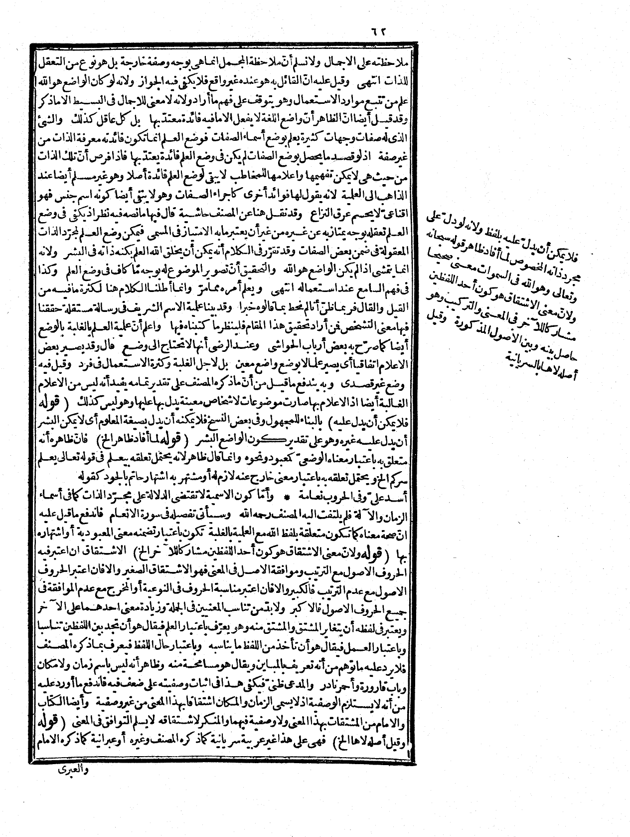 وهو منسوب إلى أرض سريانة وهي جزيرة كان بها نوح عليها السلام، وقومه قبل الغرق وهو يشاكل اللسان العربي إلا أنه محرّف، وكان لسان جميع من في الأرض إلا رجلاَ واحدة يقال له: حر فلسانه عربيّ كذا في الزاهر لابن الأنباري رحمه الله، وهم يلحقون ألفاً في أواخر الكلم، فيقولون لاها رحمانا كما في الفارسية ومعناه ذو القدرة، ويحتمل أنه من توافق اللغات كما ذكره الإمام رحمه الله، وأخر هذا القول لضعفه إذ لا وجه للذهاب إلى العجمة من غير دليل مع أنّ قولهم تأله وأله ياباه، فلا وجه لما قيل من أنه كان ينبغي ذكره مع الأقوال السالفة لبيان أصله مع أنّ تلك مبنية على عربيته، وليس هو من عدادها قيل: والتصرف فيه يدل على أنه لم يكن علماً في غير العربية ألا تراهم اشترطوا في منع صرف العجمة كون الأعجمي علماً في العجمية لما مرّ من تصرّف العرب فيه المضعف ليجمته. قوله: (فعرّب بحذف الألف الأخيرة وإدخال اللام عليه) يقال عرب اللفظ با أضشديد، وأعرب أي نقل إلى لغة العرب، وهل يشترط فيه تغيير اللفظ أم لا فيه اختلاف، والأصح أنه أكثريّ، وفي كلام المصنف ميل إلى القول الأوّل قوله: (وتفخيم لامه (أي لام الله وفي كلامه ما يوهم اختصاص التفخيم بهذا