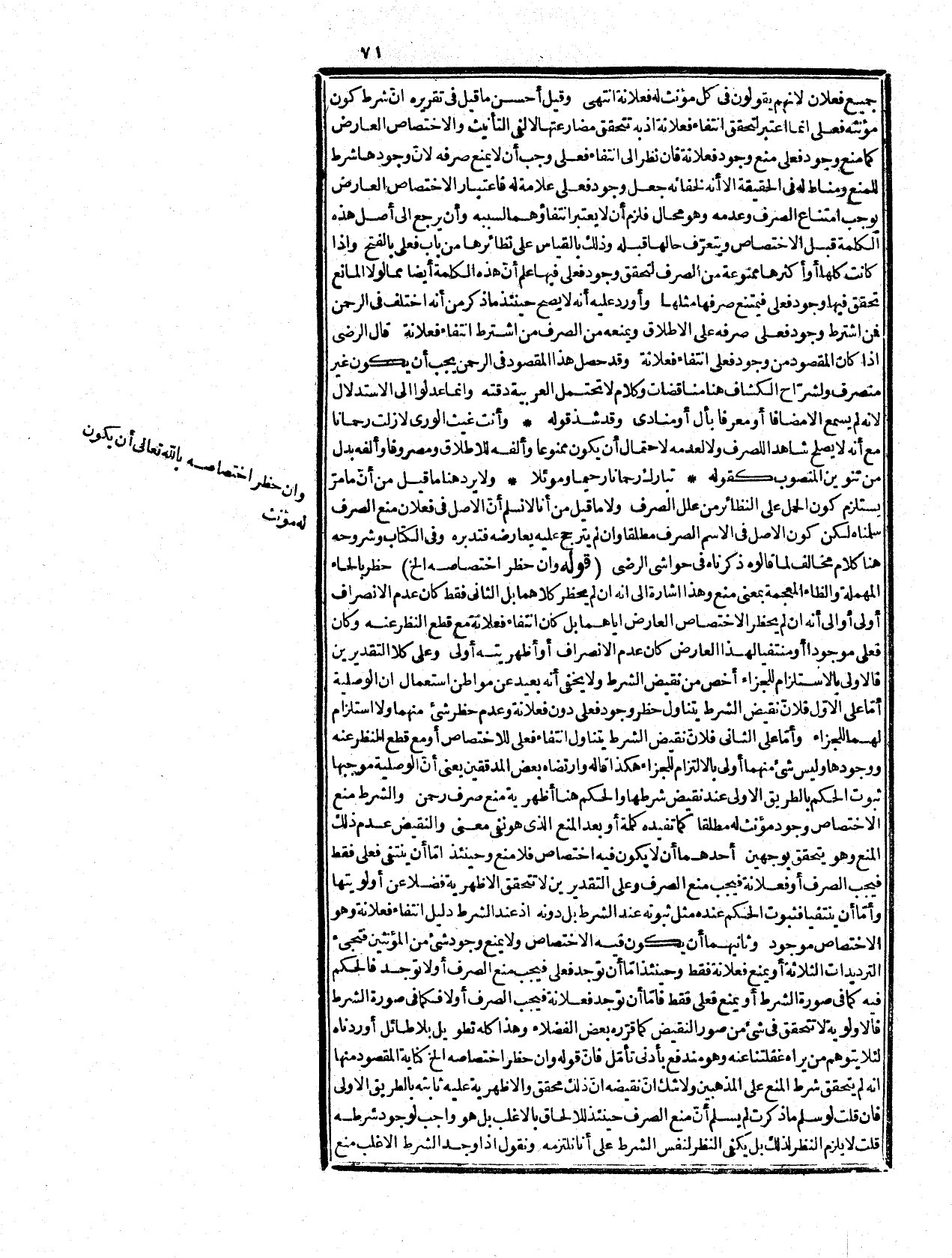 صرفه أيضاً لأنه قد يصرف نادراً مع وجود شرط آخر لضرورة أو تناسب أو لأمر آخر على خلاف القياس في بابه. قوله: (على فعلي) بغير تنوين وفعلانة يجوز صرفه، وعدمه على ما بين في محله. قوله: (بما هو الغالب في بابه) يعني بباب فعلان الذي مؤنثة، فعلى بفتح العين، فإنّ الغالب فيه أنه غير منصرف، ومؤنثه على فعلي إلا ماشد كخشيان، فإنه منصرف ومؤنثه خشيانة كما ذكره المرزوقي، ولذا تيده المنصف بالغالب وخالف قول الزمخشركيئ إلحاقاً بإخوانه من غير ذكر للغالب فيه، وان قيل إن الذي في الصحاح أنّ خشيان مؤنثه خشي على القياس، وهو الذي ارتضاه العلامة، ثم إنه قيل إنّ العمل بالغالب وان كان الأصل يعارضه إذ الأصل في الأسماء مطلقاً الصرف مخالف لما عليه الفقهاء من ترجيح الأصل، على الغالب إلا أنّ رجحان الغالب أظهر لأنّ الغالب يقتضي إلحاقه بنوعه، وهو أولى من إلحاقه بما هو الأصل في جنسه، وهو مطلق الاسم، وليس ما نقل عن الفقهاء صحيحا بل المصرّح به خلافه كما في أء ول الشافعية الذين منهم المصنف، وقد قال السبكي رحمه الله في قواعده إنما يرجح الأصل جزما إذا عارضه احتمال مجرّد، والا فقد يرجح غيره كما فصله. قوله: (وتخصيص! التسمية بهذه الأسماء الثلاثة) وهي الله والرحمن والرحيم والمراد بالتسمية البسملة لأنها تطلق عليها أو المعنى المصدري، وهو إطلاق الاسم وأل عهدية، وخصى العارف بالذكر لأنه الذي يتأتى منه ما بعده، ومعرفته بما ذكر من تعلق الإستعانة بالوصف المشعر