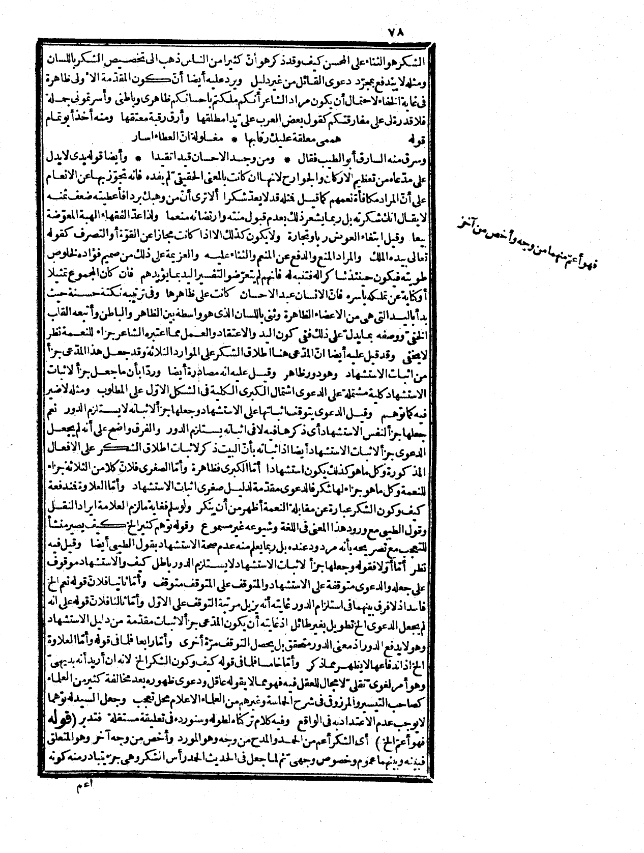 قال قدّس سره: وهو إحدى شعب الشكر باعتبار المورد وإن كان الشكر إحدى شعبه باعتبار المتعلق، وعبر عن الأقسام بالشعب لتشعبها من مقسمها، فإذا لم يعترف العبد بإنعام المولى، ولم يبن عليه ما دلّ على تعظيمه لم يظهر مته شكر ظهورا كاملاَ، وان اعتقد وعمل لم يعدّ شاكرا، لأن حقيقة الشكر إظهار النعمة والكشف عنها، كما أنّ كفرانها إخفاؤها وسترها، والاعتقاد أمر خفيّ في نفسه وعمل الجوارح، وإن كان ظاهراً إلا أنه يحتمل خلاف ما يقصد به إذا لم يعين له بخلاف النطق، فإنه ظاهر في نفسه، ومعين لما أربد وضعا فهو الذي يفصح عن كل خفيّ، فلا خفاء فيه، وعلى كل نسبة، فلا احتمال له، وكما أنّ الرأس أظهر الأعضاء، وأعلاها وعمدة لبقائها كذلك الحمد أظهر أنواع الشكر وأشملها على حقيقته، حتى إذا فقد كان ما عداه بمنزلة العدم انتهى.