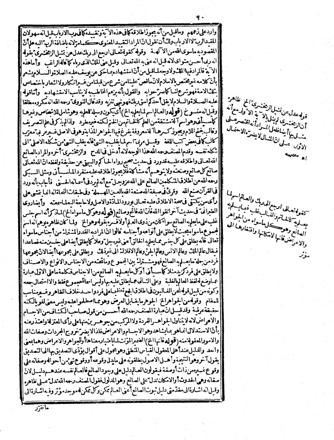 من كلام المحقق في شرح المقاصد أنّ هذ. العلة بحسب التعقل والتصديق لا بحسب الخارح فالمعلول، وهو قدم الصانع كذلك والقدم المتقرّر في العقل لا يتخلف فيقتضي وجوب الوجود.
