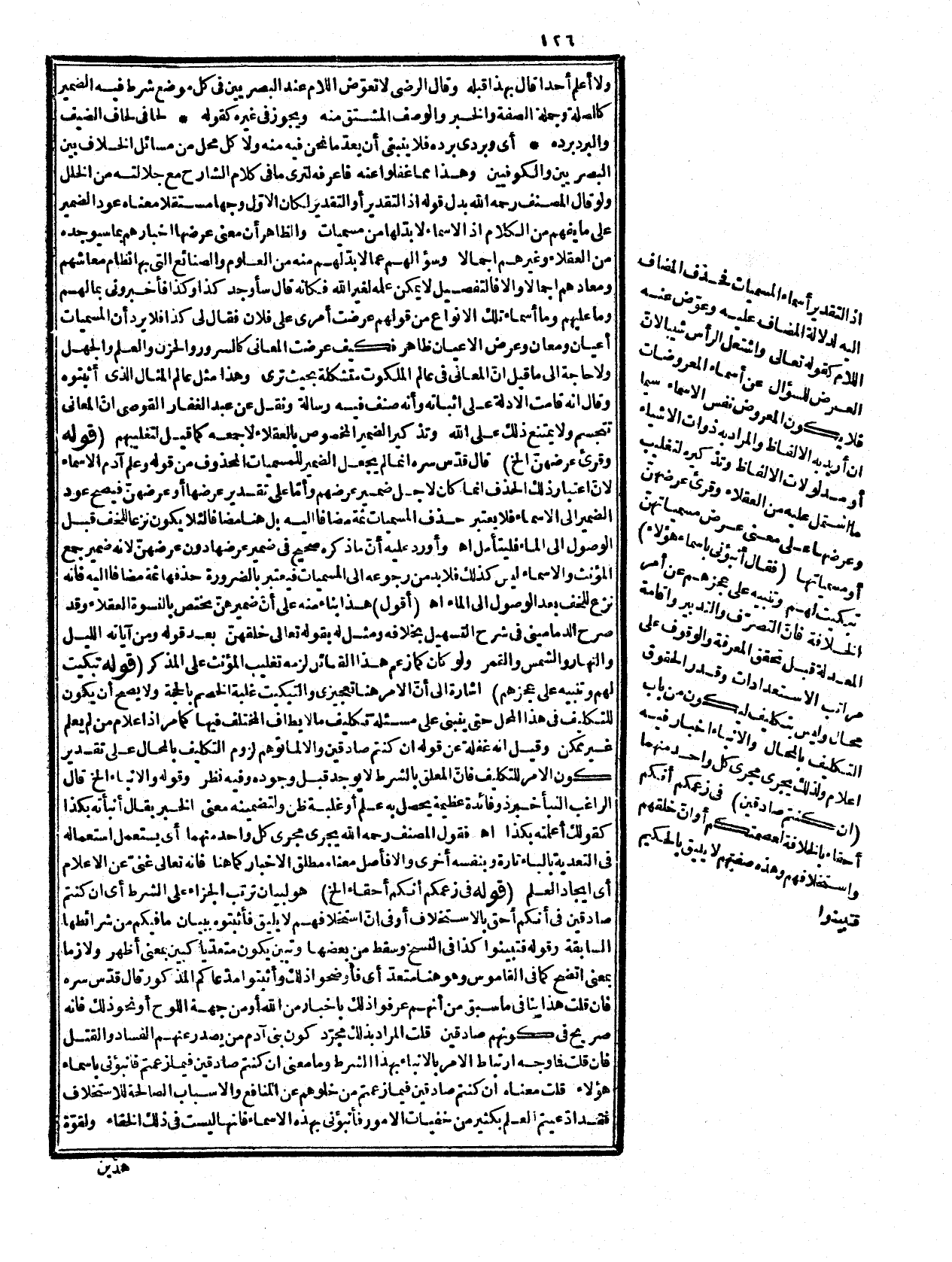 لكن الاستدراكية مثل هذا الكتاب وإن صغر حجمه لكن كثر علمه لما في المبتدأ باعتبار تقييده بأن 10 لوصلية من المعنى الذي يصلح الخبر استدواكاً له واشتماله على مفروض وجعل بعض الفضلاء الخبر مقدرا، والقائل غفل عن هذا لأنّ إن الوصلية لا تأني بدون الواو فما ذكره خطأ واستدلا ا 4 بالشعر ليس في محله وقوله لكنه لازم مقالتهم الأوّل لازم لقوله: {وَنَحْنُ نُسَبِّحُ بِحَمْدِكَ} الخ والثاني لقوله أتجعل الخ وبجعله لازما لما قالوه لا أنهم صرّحوا به واعتقدوه سقط ما مر من الاعتراض بأنه لا يليق إسناده إليهم وعلم أنّ المصنف 0- حمه الله ليس بغافل عنه والغافل من اعترض عليه، وما ذكره من أنّ التصديق وكذا التكذيب يكون لما يتضمنه الكلام وان كان إنشاء ظاهر. قوله: (اعتواف بالعجز والقمور الخ) إشارة إلى أنّ الكلام ملقي لعالم بفائدة الخبر ولازمها فلا بد من أن يقصد به بعض لوازمه وهو هنا اعترافهم بعجزهم وقصورهم عن إدراك حكمته إلا بتوفيق منه وهو ظاهر، وقوله وأشعار الخ وجهه أن نفيهم شامل لأحوال آدم وخلافته ومن لا يعلم شيئا لا يعترض عليه بل يسأل عنه ولا ينافي هذا ما مر من أنه تعجب لأنّ التعجب إنما يكون عند خفاء السبب، وأمّا احتمال أن يكون اعتراضاً وهذا توبة ورجوع عنه فبعيد، وظهور ما خفي عنهم علم من تعجيزهم إجمالاً وتلويحاً بأن ثمة من يعلم ذلك، وشكر النعمة يفهم من قوله علمتنا فإنه اعتراف بنعمة تعليمه تعالى لهم واعتقل بالعين المهملة والمثناة الفوقية واللام بمعنى حبس في الأصل والمراد به هنا أشكل وتصح فراءته مجهولاً ومعلوما. قوله: (وسبحان مصدر كغفران الخ) قدم معنى التسبيح وسبحان قيل: إنه اسم مصدر لا فعل له وأمّا سبح المشدد فمأخوذ من سبحان الله كهلل أي قال سبحان الله ولا إله إلا الله وقيل: إنه مصدر سمع له فعل وهو سبح مخففا بمعنى نزه وقدّس، قال الراغب: والسبوح والقدّوس من أسمائه تعالى وليس في كلامهم فعول بالضم سواهما، وقد يفتحان ككلوب وسمور والسبحة التسبيح ويقال: للخرزات التي يسبح بها سبحة ا!. وهو مصدر لا ينصرف أي لازم النصب على المصدرية وكان المصنف