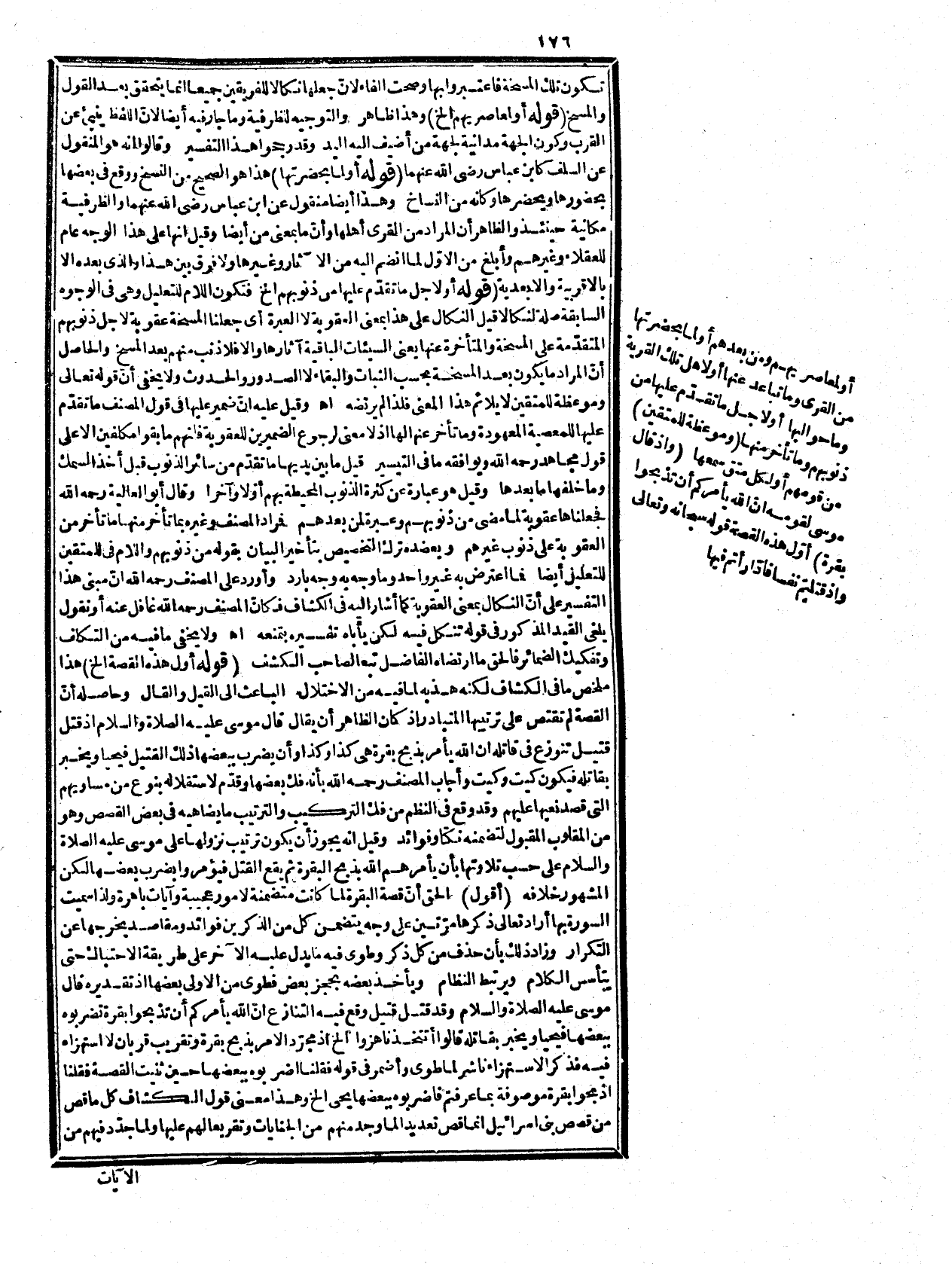 الآيات العظام وهاتان قصتان كل واحدة منهما مستقلة بنوع من التقريع وان كانتا متصلتين متحدتين فالأولى لتقريعهم على الاستهزاء وترك المسارعة إلى الامتثال وما يتغ ذلك، والثانية للتقريع على قتل النفس المحرمة وما يتبعه من الآية العظيمة وإنما قدّمت قصة الأمر بذبح البقرة على ذكر القتيل لأنه لو عمل على عكسه لكانت قصة واحدة ولذهب الغرض! في تثنية التقريع وقد روعيت نكتة بعد ما استؤنفت الثانية استئناف قصة برأسها أن وصلت بالأولى دلالة على اتحادهما بضمير البقرة لا باسمها الصريح في قوله: اضربوه ببعضها حتى تبين أنهما قصتان فيما يرجع إلى التقريع وتثنيته بإخراج الثانية مخرج الاستئناف مع تأخيرها وأنها قصة واحدة بالضمير الراجع إلى البقرة وتحقيق مراده على هذا المنوال مما لا مرية فيه وان لم يهتد إليه كثير من الفحول حتى قيل: لولا الفك والتقديم لم يحصل الفرض فإن قتل النفس بغير نفس والاختصام فيها من قبيل ما سبق من الاعتداء في السبت فإنّ في كل منهما ارتكاب المنهيّ بخلاف الاستهزاء بأمر الله وروادفه، وما فعله المصنف رحمه الله أدق مما ذكره الزمخشريّ وبالقبول أحق، ويمكن أن يناقش فيما ذكره بمنع توقف تثنية التقريع على فك الترتيب فإنه يحصل بتكرير التذكير وموقع ما في القصة من الجنايات فتأمل. قوله: (وهو الاستهزاء بالأمر الخ الما سيأتي من قوله استخفافا به فلا يرد عليه أنّ المنقول عنهم في قوله أتتخذنا هزواً حمل الأمر على الاستهزاء لا الاستهزاء بالأمر وفرق بينهما. قوله: (وقصته الخ) في الكشاف كان في بني إسرائيل شيخ موسر فقتله بنو أخيه ليرثوه وطرحوه على باب مدينة ثم جاؤوا يطالبون بديته الخ. وقيل عليه الصواب بنو عمه كما في التفاسير وكما قال بعد ذلك قتلني فلان وفلان لابني عمه ومنهم من غير العبرة إلى فقتل ابنه بنو أخيه ليرثوه أي الشيخ ويدفعه ما في آخر القصة ولم يورّث قاتلي بعد ذلك لأنهم لم يقتلوا المورّث أي الشيخ فقيل: ضمير يرثوه للابن ويكون قتل الابن بعد موت الثيخ، ورد بأنه لا معنى لذكر الشيخ حينئذ إذ صارت القصة أنه كان رجل موسر فقتله بنو عمه ليرثه واعتذر له بأنّ الشيخ كان مشهوراً بينهم