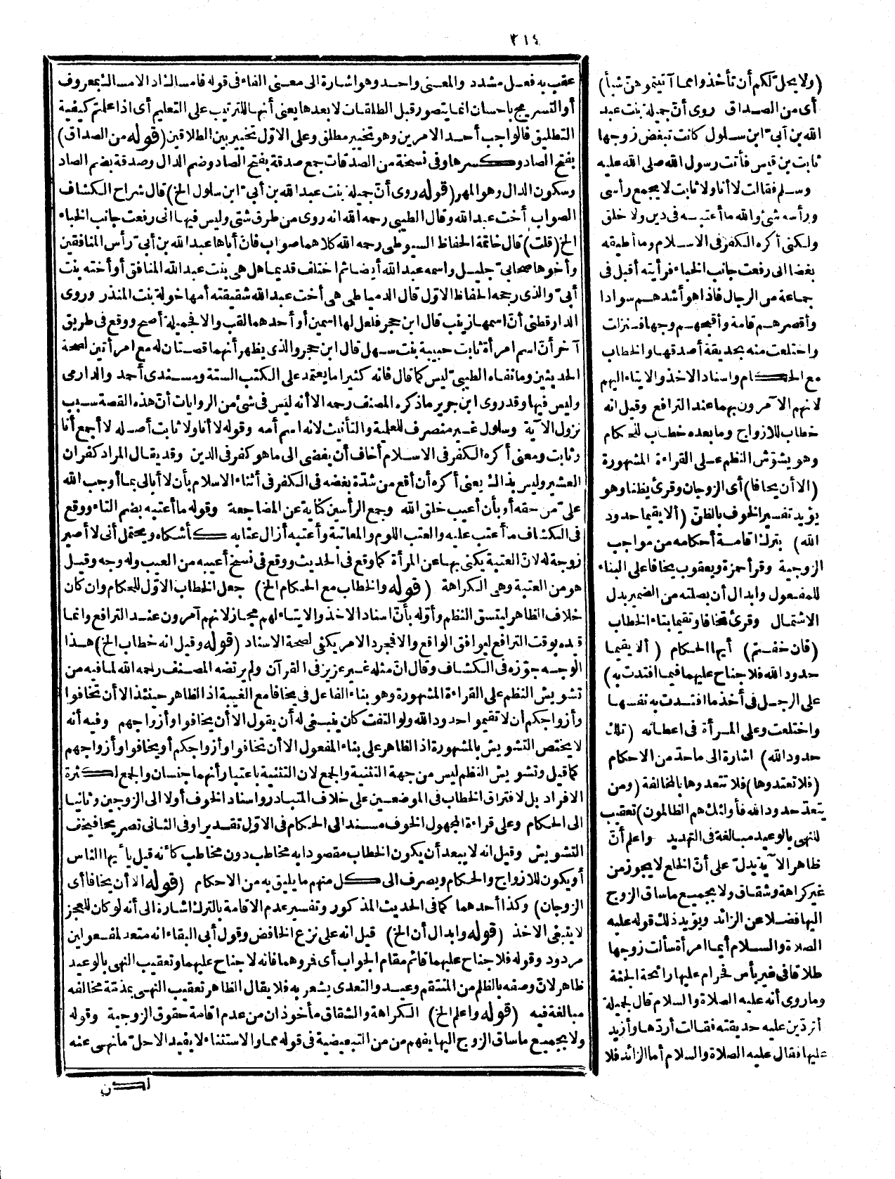 أنه الخ (هذا هو الظاهر والأظهر أنه طلاق وأنه متفرع على قوله الطلاق مرّتان أو أنّ ما ذكره بيان لحكم الطلقتين وان منها ما هو بفداء وما هو بدونه، أو قوله: فإن طلقها بيان لحكم الثالثة لا لبيان مرتبتها وشرعيتها، وروي أنّ قوله: أو تسريح بإحسان إشارة إلى الثالثة فيزيد قطعا ولو سلم الأوّل لزم اختصاص ما بينه من حكم الخلع بما بعد المرّتين وليس كذلك ومجانا بفتح الميم والجيم وألف ونون ما ليس له عوض، وأورد على قوله: إنه متعلق بقوله الطلاق مرّتان أنه يقتضي اختصاص عدم الحل بعد الثلاث بما إذا كانت الثالثة بعد تكرار الطلاق مع التفريق أو بعد طلقتين رجعيتين على تفسيري الطلاق مزتان فالأظهر أن يفسر قوله: الطلاق مرّتان بالطلاق المستعقب للتحليل سواء كان النكاج أو الرجوع. قوله: (أقول) اختصاصه بذلك مقرر وهو لا يقتضي نفي ما سواه وقد تمسك بظاهره بعض السلف لأنّ الطلاق الثلاث الدفعي كان على عهده صلى الله عليه وسلم واحدة رجعية كما في صحيح مسلم وغيره من كتب الحديث إلى أوائل خلافة عمر رضي الله عنه فلما رأى كثرته أمضاه ثلاثاً ثم انعقد الإجماع عليه حتى خطؤوا من يحكم بخلافه، وقوله: حتى تزوّج مجهول أو مضارع وأصله تتزوّج وقوله: يستند في بعض النسخ يسند ووجه التعلق بظاهره أنّ النكاج اشتهر في العقد وبه ورد النص. قوله: (لما روي أنّ امرأة رفاعة الخ (هو رفاعة بن شمول القرظي صحابيئ مشهور والحديث صحيح عن عائشة رضي