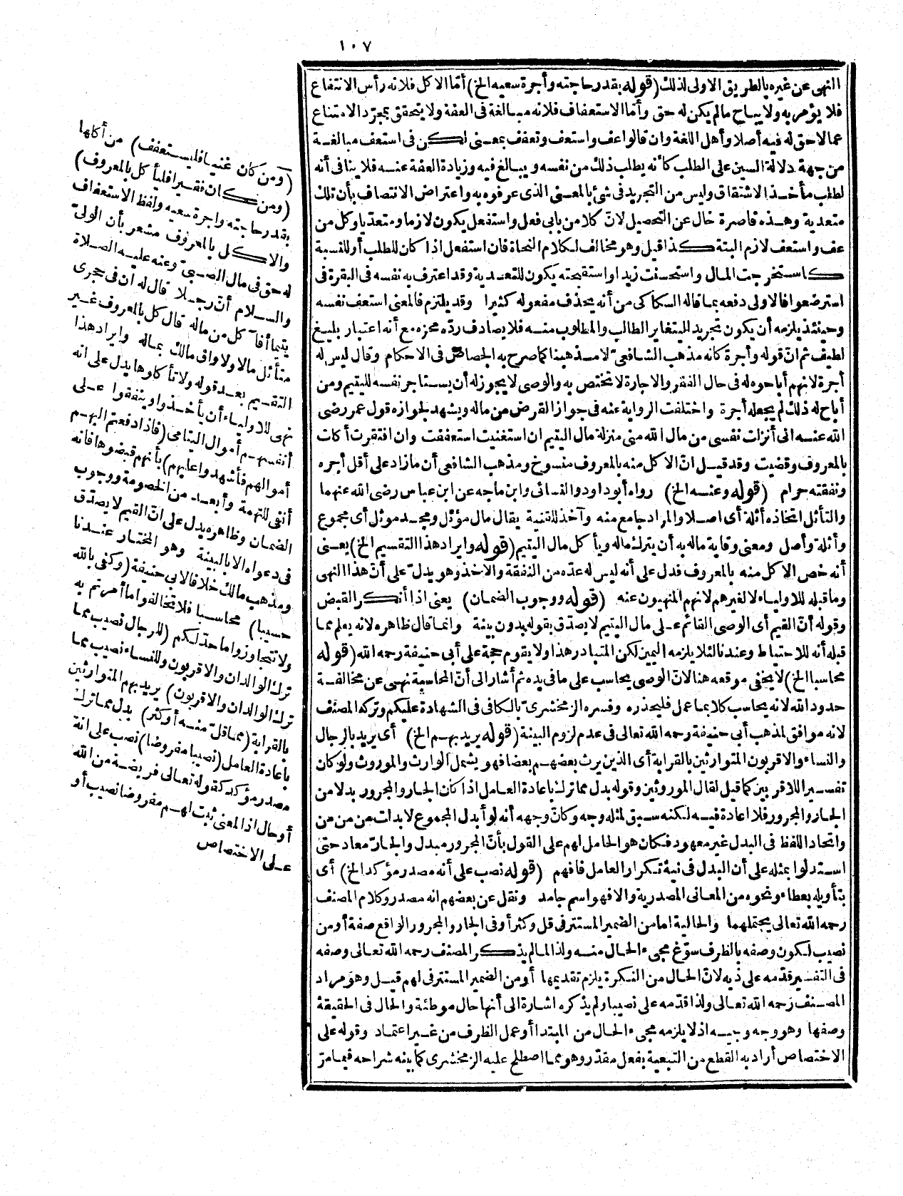 (قلت) عجبت من هؤلاء بأجمعهم وعدم اهتدائهم إلى المراد منه وفي تاريخ المدينة للشريف السمهودي مسجد الفضيخ مسجد صغير شرقيّ مسجد قباء على شفير الوادي على نشز من الأرض مردوم وهو مربع ذرعه بين المشرق والمغرب أحد عشر ذراعا ومن القبلة للشام نحوها روى ابن شيبة عن جابر بن عبد الله رضي الله عنهما قال حاصر النبي ع! يير بني النضير فضرب قبته قريباً من مسجد الفضيخ ست ليال فلما حرمت الخمر خرج الخبر إلى أبي أيوب ونفر من الأنصار رضي الله عنهم وهم يشربون فيه فضيخا فحلوا وعاء السقاء وهراقوه، وفيه فبذلك سمي مسجد الفضيخ، وكان ذلك قبل اتخاذه مسجداً أو قبل العلم بنجاسة الخمر ولأحمد وأبي يعلى عن ابن عمر رضي الله عنهما أنّ النبي صلى الله عليه وسلم اثى بفضيخ فثربه فيه فسمي مسجد الفضيخ وقيل إنه يعرف اليوم بمسجد الشمس ولم أره اهـ فانظر خبطهم فيما مرّ وأنا أعجب من السيوطي رحمه الله تعالى مع سعة حفظه كيف تابعهم فيه، وأخرح ابن حبان في تفسيره عن ابن عباس رضي الله عنهما هدّا الحديث بطوله، وسماه أوس بن ئابت أيضا، وقال ترك ابنتين وابنا صغيرا وسمي ابني عمه خالداً وعرفطة، وقال فيه فأعطى المرأة الثمن وفسم ما بقي للذكر مثل حظ الأنثيين يعني من الأولاد إذ لا ميراث لابني العم معهم، وليس فيه ذكر مسجد الفضيخ وسويده مصغر بسين مهملة علم وعرفطة بضم العين المهملة والراء المهملة والفاء والطاء المهملة علم وهو في الأصل اسم شجر وقوله:) أو قتادة الخ) شك من الراوي في اسمهما وعرفجة بعين مهملة مفتوحة وراء ساكنة مهملة وفاء وجيم علم أيضا، وهو اسم شجر أيضاً ويذب من الذب بالذال المعجمة الموحدة المشددة المنع والحماية والحوزة المقرّ وما يجب أن يحفظ ويحمي، وقوله: ولم يبن أي لم يبين الله نصيب كل على التقديرين وإنما بين في المواريث الآتية وقوله: (وهو دليل الخ) وهو هنا بيان لإجمال بالتفصيل والحنفية أيضا قائلون بجواز تأخيره كما مرّ. قوله. (ممن لا يرث (بقرينة ذكر الورثة قبله