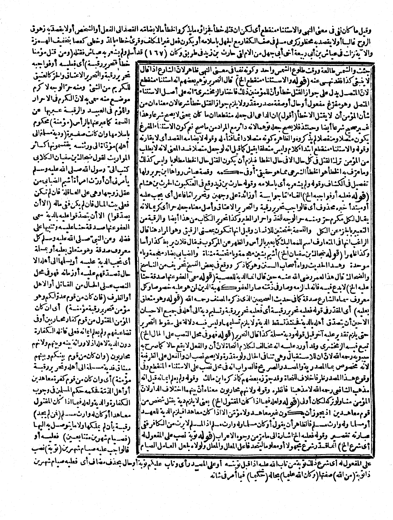 لدلالة السياق، والسباق عليه، وقوله: فاطلبوا الخ إشارة إلى أنّ صيغة التفعيل هنا بمعنى الاستفعال كما صرّج به الزمخشريّ، وأهل العربية، وقوله: وثباته إشارة إلى القراءة الآتية وأنهما بمعنى أي لا تعجلوا وتحرّوا وتأملوا، وتحية الإسلام السلام، وكان للجاهلية تحية أخرى كانعم صباحا والقاؤها التلفظ بها، والقاء السلم أي الانقياد إظهاره استعارة كما مرّ، وقوله: متعوّذاً أي ملتجئا إلى إظهار ذلك خوف القتل، وقراءة الكسر قراءة الجمهور والأخرى مروية عن عليّ رضي الله عنه، وقوله: سريع النفاد مأخوذ من تسميته عرضا. قوله: (أي أؤل ما دخلتم الخ) حصن الدماء عدم سفكها، والمواطأة الموافقة، وقوله: فإنّ بقاء ألف كافر لأنه قد لا يأثم به بخلاف القتل، وجعل الأمر مكرّرا لكنه متغاير باعتبار ترتبه على ما ذكر من حالهم المقتضية له فهو آكد، وقيل: إنه غير مكرّر لتقدير الأوّل تبينوا أمر من تقتلونه، والثاني تبينوا نعمة الله عليكم. قوله: (فلا تتهافتوا الخ) التفاوت الوقوع والتساقط، وفي الدرّة أنه لا يستعمل إلا في الشرّ، وفدك بفتح الدالط قرية بخيبر، وألجأ غنمه إلى عاقول أي ساقها، والعاقول الغار وأسامة بن زيد وغنيمة تصغير غنم للتقليل وقوله، وقال ودّ لو فرّ أي ليس إتيانه بكلمة التوحيد إلا لينجو بها حتى يفرّ بأهله وماله منا. قوله: (وفيه دليل على صحة للمان المكره الخ) وجه الدلالة أنه مع ظنهم أن إسلامه لخوف القتل، وهو إكراه أنكر عليهم قتله فلولا صحة إسلامه لم ينكر ووجه الدلالة على خطا المجتهد أمره بالتثبت المشعر بأن العجلة خطأ ووجه العفو عنه مأخوذ من السياق، وعدم الوعيد على ترك التثبت، ومن المؤمنين حال كما ذكره،