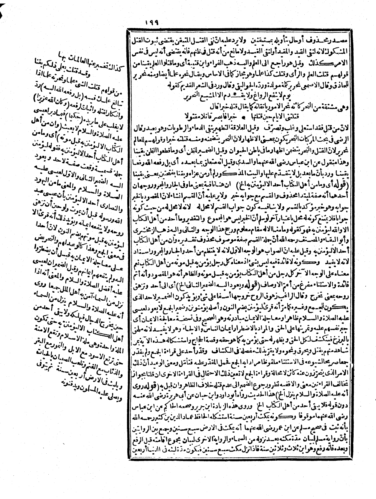 لم يكن الحصر مستفاداً من غير التقديم، ولم يكن الثاني بياناً للأوّل كما إذا قلت بذنب ضربت زيداً، وبسوء أدبه أي لا بغير ذنب فافهمه فإنه من النفائس. قوله: (ناساً كثيرا (أي هو صفة مفعول صدّ مقدراً أو صفة مفعول مطلق فينتصب على المصدرية، وقيل إنه منصوب على الظرفية أي زماناً كثيراً، وإنما لم تعد الباء في أخذهم، ونحوه، وأعيدت في غيره لأنه فصل بين المعطوف والمعطوف عليه بما ليس معمولاً للمعطوف عليه، وحيث فصل بمعموله لم تعد، وجملة، وقد نهوا حالية ووجه الدلالة على أن النهي للتحريم أنه تعالى توعد على مخالفته، وهو ظاهر. قوله: (نصب على الماخ إن جعل يؤمنون الخبر) كما مرّ، وقد جؤز فيها أن تكون جملة حالية أيضاً، وليست مؤكدة لتقييدها بقيد ليس في الأوّل، ولعدم دلالتها على الرسوخ في العلم، وإليه أشار بقوله أن جعل الخ. وقد أشكل هذا على من قال: لا وجه لتقييد النصب بذلك الجعل فإنه منصوب على المدح مطلقا وخبط بعضهم في توجيهه، وما ذكره المصنف رحمه الله بعينه كلام الكسائي قال مكي من جعل نصب المقيمين على المدح جعل خبر الراسخين يؤمنون فإن جعل الخبر أولئك سنؤتيهم لم يجز نصب المقيمين على المدح لأنه لا يكون إلا بعد تمام الكلام لكن قال النيسابوري رحمه الله طعن الكسائي في القول بالنصب على المدح بأنه يكون بعد تمام الكلام، وهنا ليس كذلك لأنّ الخبر أولئك، والجواب أنّ الخبر يؤمنون ولو سلم فما الدليل على أنه لا يجوز الاعتراض بين المبتدأ وخبره، ولما رأى الزمخشرفي ما فيه لم يصرّح بما ذكره المصنف رحمه الله، وكان وجه ما ذكروه أنّ القطع في العطف في قوّة الاتباع لأنه الأصل فيه ومقتضى العطف على المبتدأ أن يكون الخبر المذكور بعده للمبتدأ، وما عطف عليه، وكذا الضمير العائد فيه، وبعد الأخبار عنه لا يصح قطعه لكن حكى ابن عطية رحمه الله عن قوم منع نصبه على القطع من أجل حرف العطف، والقطع لا يكون في العطف إنما ذلك في النعوت، ولما استدل النحاة رحمهم الله بقوله: