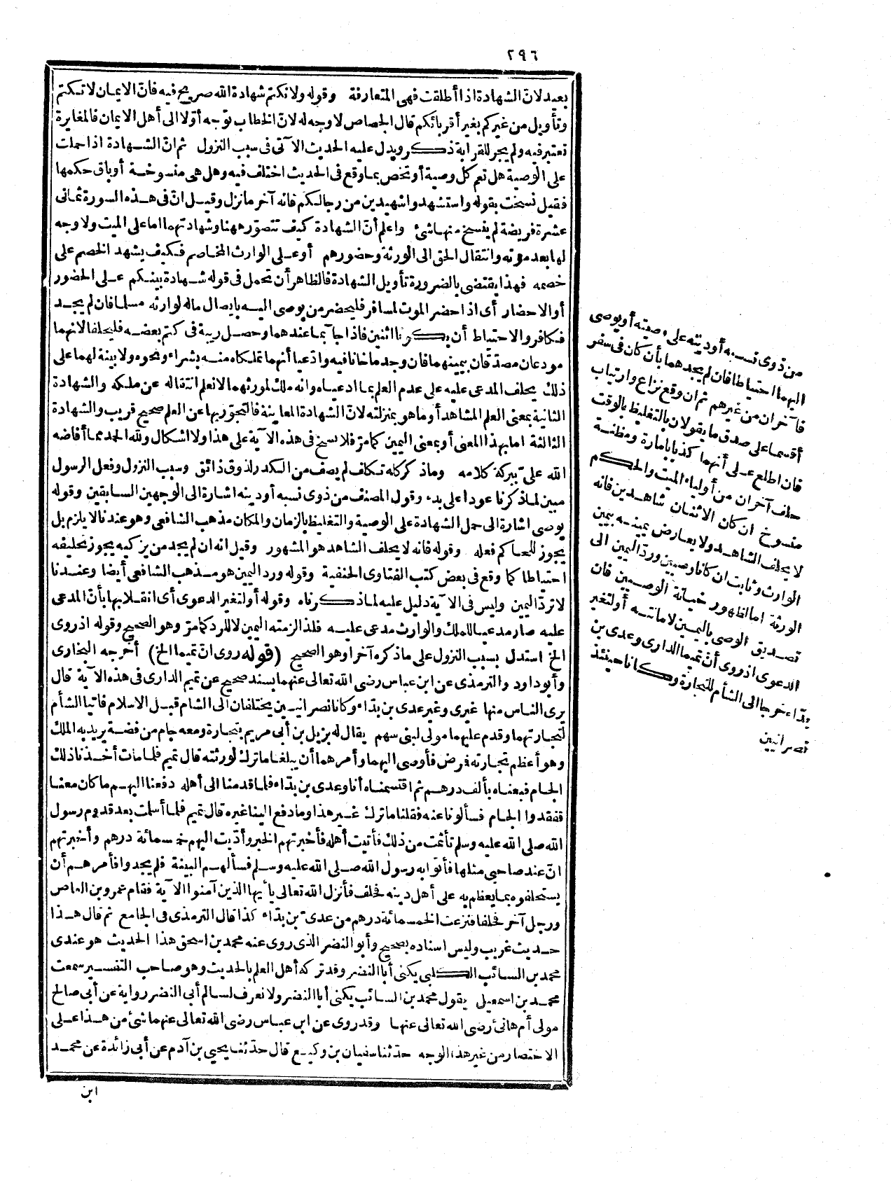 بن أبي القاسم عن عبد الملك بن سعيد بن جبير عن أبيه عن ابن عباس رضي الله عنهما قال خرج رجل من بني سهم مع تميم الداري وعديّ بن بداء فمات السهمي بأرض ليس بها مسلم فلما قدما بتركتة فقدوا جاما من فضة محوّصا بالذهب فأحلفهما رسول الله صلى الله عليه وسلم، ثم وجد الجام بمكة فقيل اشتريناه من تميم، ومن عديّ فقام رجلان من أولياء السهمي فحلفا بالله لشهادتنا أحق من شهادتهما، وأنّ الجام لصاحبهم قال: وفيهم نزلت الآية وهذا حديث حسن غريب، وهو حديث ابن أبي زائدة، ومحمد بن القاسم كوفي قيل إنه صالح الحديث اهـ، وفي نور النبراس تميم الداري المذكور في هذه القصة نصراني من أهل دارين قاله مقاتل، وقيل هو تميم المعروف الداري منسوب إلى الدار، وهو بطن من لخم اهـ وبزيل بباء موحدة مضمومة وزاي معجمة مولى العاص بن وائل صاحب الجام، واختلف في ضبطه كما في كتاب المشتبه وبداء بياء موحدة، ودال مهملة مشددة ومد كشداد، ويقصر، وفي تفسير ابن مقاتل بنداء بنون قبل الدال، وهو غريب، وقال ابن حجر أنه اختلف في إسلامه، والمشهور إنه لم يسلم فقوله هنا، وبديل أي بدال مهملة هو ما في بعض النسخ، وفي الإصابة أنه بزيل، وقيل بريل براء مهملة بدل الدال، وبريل بن أبي مريم، وقيل ابن أبي مارية مولى عمرو بن العاصي، ولا خلاف في أنه مسلم مهاجري اهـ فقول النحرير: قيل الصواب براء مفتوحة بعد الباء المضمومة عندي لا يخفى ما فيه، وقوله: دوّن أي كتب، وقوله: السهميان إشارة إلى أنهما وارثان له لأنه من بني سهم، وتخصيص العدد يعني باثنين من الورثة، وقوله: فأتاهم جعل الاثنين جمعاً تسمحا. قوله: (أي الحكم الذي تقدّم أو تحليف الخ) أي المشار إليه الحكم السابق تفصيله في هذه القضية أو تحليف الشاهدين، وقيل المشار إليه الحبس بعد الصلاة، وأدنى معنى أقرب، والى مقدّرة قبل أن المصدرية، والوجه بمعنى الذات، والحقيقة أي أقرب إلى الإتيان بها على