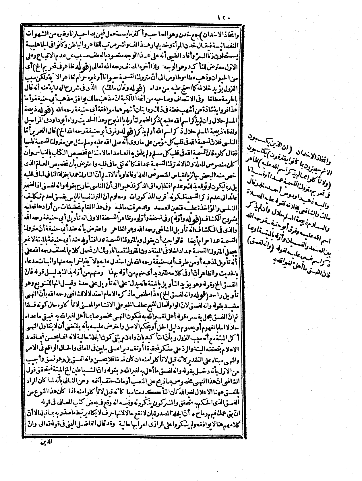 لا امتناع في تصدير الجملة الحالية بأنّ والنحرير أشار إلى تفصيل فيه وهو من الفوائد البديعة. قوله: (والضمير لما الخ) أئا بتقدير مضاف أي أكله أو جعله عين الفسق مبالغة، ولم يجعل الضمير للمصدر المأخوذ من مضمون لم يذكر اسم الله عليه أي إن ترك ذكر اسم الله عليه فسق لأن كون ذلك فسقا لا سيما على وجه التحقيق، والتأكيد خلاف الظاهر، ولذا لم يذهبوا إليه ولأنّ ما لم يذكر اسم الله عليه شامل للميتة مع القطع بأنّ ترك التسمية عليها ليس بفسق كذا قيل، وقيل عليه إنّ الضمير يرجع إلى ما باعتبار أحد متناوليه والمعنى لا تأكلوا الميتة وما أهل لغير الله به، فإنّ عدم التسمية على الثاني فسق دمانّ الكفار يجادلونكم في أكل الأوّل، وقوله: {وَإِنَّ الشَّيَاطِينَ} من جملة الدليل دال على أحد شطري المدعي وهو مع تكلفه ليس مطابقا لكلام المعترض فإنه على تقديره رجوعه إلى المصدر لا إلى ما وهذا من جملة أوهامه، والمراد بما قتله الله الميتة. قوله: (وإنما حسن حذف الفاء الخ) تبع فيه أبا البقاء رحمه الله، وقيل عليه إنّ هذا لم يوجد في كتب العربية بل اتفقوا على أنّ ترك الفاء في الجملة الاسمية لا يجوز إلا في ضرورة الشعر، وكأنه قاسه على جواز عدم جزم المضارع في الجزاء إذا كان الشرط ماضيا فالتوجيه في تركها ما ذكر الرضي وأبو حيان، والمعرب إنه على تقدير القسم وحذف لام التوطئة فلذلك أجيب القسم والأصل والتقدير ولئن أطعتموهم والله أنكم لمشركون وحذف جواب الشرط لسد جواب القسم مسده وأتا ما ادّعاه من أنّ حذف الفاء مخصوص بالضرورة فليس كما قال فإنّ المبرد أجازه في الاختبار كما ذكره المرادي في شرح التسهيل، وقول ابن مالك: توضيحه ما زعمه النحويون من أنه مخصوص بالضرورة ليس بصحيح بل يكثر في الشعر، يقل في غيره كما في الحديث: " إنك إن تاع ورثتك أغنياء خير من أن تذرهم عالة " (1 (فمن خص الحذف بالشعر فقد حاد عن التحقيق، وضيق حيث لا تضييق انتهى، فيه نظر لأن الكلام في حذفها وحدها إمّا تبعية للجملة أو بعض أجزائها فليس محل الخلاف كما في الحديث فرث أمر يغتفر تبعاً ولا يغتفر استقلالاً. قوله: (مثل به من هداه الله الخ) قيل هما