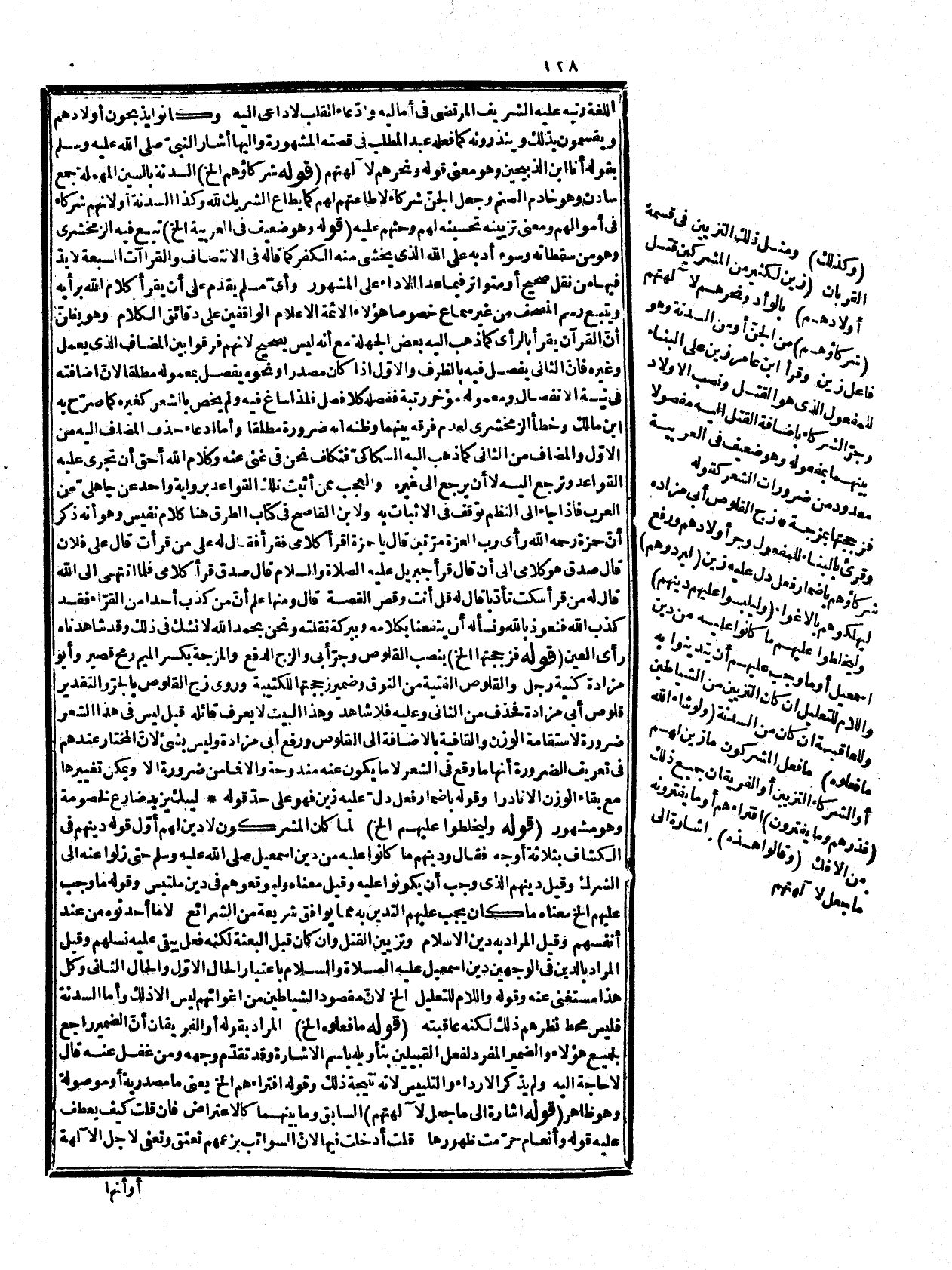 صرّحوأ بنظيره في تقدمه، فإن قلت استشهادهم للفصل بين المضاف والمضاف إليه بقوله فزججتها الخ ينافيه لأن زج مفعول مطلق لزججتها وقد نصب القلوص قلت قد أجاب عنه الرضي بأنّ المصدر العامل ليس مفعولاً مطلفا في الحقيقة بل المفعول المطلق محذوف تقديره زجا مثل زج القلوص، وقوله بمحذوف تقديره كائنا وعلى جعله مفعولاً له أي قالوا: ما تقدم لأجل الافتراء على الباري تعالى وهو بعيد معنى، وقوله أو بدله يشير إلى أن الباء للمقابلة والعوضية كما في اشتريت بكذا. قوله: (وتأنيث الخالصة للمعنى (ثم راعى لفظها، وقال العراقي في الإنصاف ليس في القرآن آية حمل فيها أوّلاً على المعنى، ثم على اللفظ ئانيا غير هذه لا آية يعني إذا لم تكن خالصة مصدواً، ورد بأنّ له نظائر في كلام العرب كثيرة وفي القرآن في مواضع كآية: {كُلُّ ذَلِكَ كَانَ سَيٍّئُهُ عِنْدَ رَبِّكَ مَكْرُوهًا} [سورة الإسراء، الآية: 38] إذ أنث ضمير كل مراعاة للمعنى ثم ذكر حملآ على لفظها وآيات أخر وهي ثلاثة أخر كما في الدرّ المصون فانظره، ثم إنه غير مسلم هاهنا، فإنه حمل على اللفظ أوّلاً لأنّ صلة ما جارّ ومجرور تقدير متعلقه استقز لا استقرّت فقد روعي اللفظ فيه أوّلاً كذا قيل ولا وجه له لأنّ المتعلق والضمير المستتر فيه لا يعلم تذكيره وتأنيثه حتى يكون مراعاة لأحد الجانبين، وراوية بمعنى راو أي كثير الرواية وقيده بقوله رواية الشعر لئلا يتوهم أنه بمعنى المزادة والتاء فيه للمبالغة، وقوله:) أو هو مصدر) ذكره الفرّاء لكن مجيء المصدر بوزن فاعل وفاعلة قليل وهو حينئذ إمّا للمبالغة، أو بتقدير ذو وهذا مستفيض في لسان العرب تقول فلان خالصشي أي ذو خلوصي قال الشاعر: