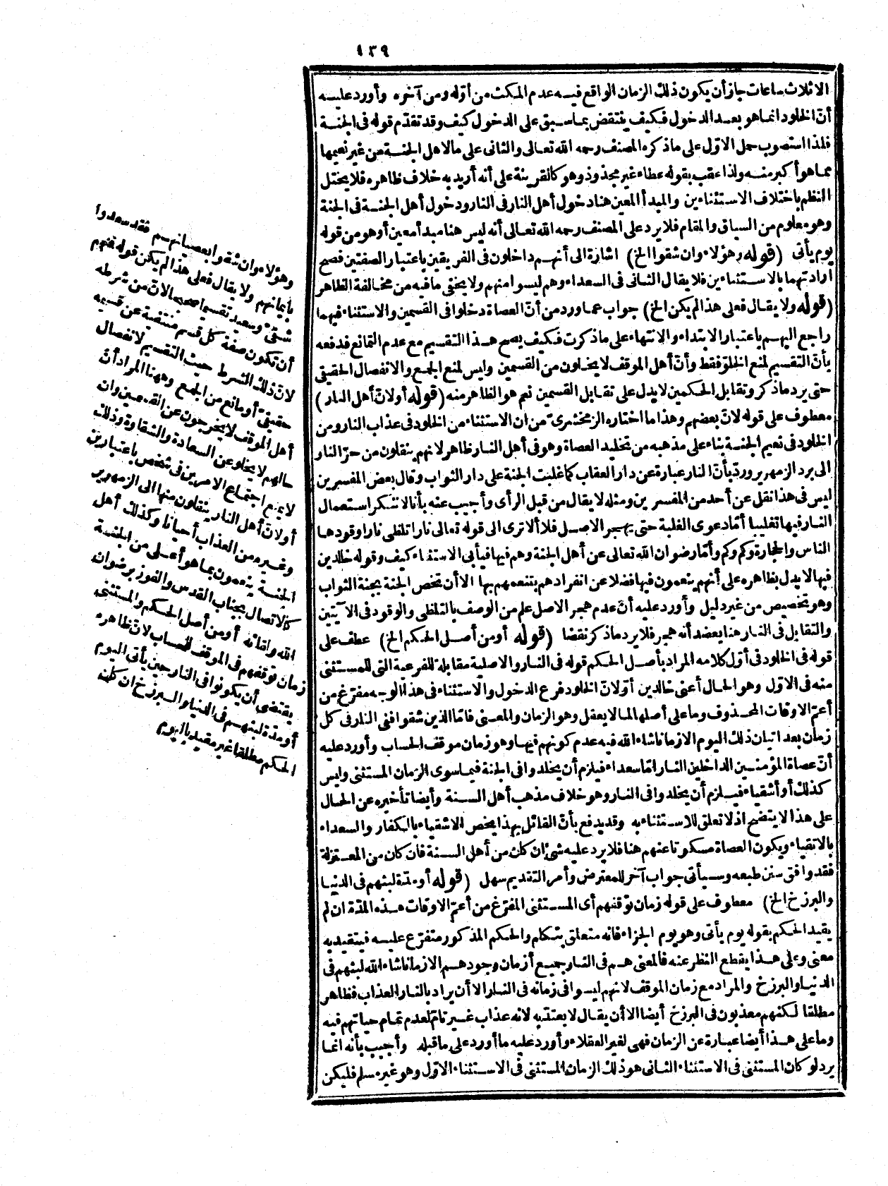 الزمخشريّ من أن الاستثناء من الخلود في عذاب النار، ومن الخلود في نعيم الجنة بناء على مذهبه من تخليد العصاة، وهو في أهل النار ظاهر لأنهم ينقلون من حرّ النار إلى برد الزمهرير ورذ بأنّ النار عبارة عن دار العقاب كما غلبت الجنة على دار الثواب، وقال بعض المفسرين: ليس في هذا نقل عن أحد من المفسرين، ومثله لا يقال من قبل الرأي، وأجيب عنه بأنا لا ننكر استعمال النار فيها تغليبا أفا دعوى الغلبة حتى يهجر الأصل فلا ألا ترى إلى قوله تعالى: {نَارًا تَلَظَّى} [سورة الليل، الآية: 14] ناراً {وَقُودُهَا النَّاسُ وَالْحِجَارَةُ} [سورة البقرة، الآية: 24] وكم وكم وأما رضوان الله تعالى عن أهل الجنة، وهم فيها فيأبى الاستثناء كيف، وقوله خالدين فيها لا يدل بظاهره على أنهم ينعمون فيها فضلا عن انفرادهم بتنعمهم بها إلا أن تخص الجنة بجنة الثواب وهو تخصيص من غير دليل، وأورد عليه أن عدم هجر الأصل علم من الوصف بالتلظي، والوقود في الآيتين والتقابل في النار هنا يعضد أنه هجر فلا يرد ما ذكر نقضا. قوله: (أو من أصل الحكم الخ) عطف على قول في الخلود في أوّل كلامه المراد بأصل الحكم قوله في النار، والأصلية مقابلة للفرعية التي للمستثنى منه في الأوّل، وهو الحال أعني خالدين أوّ لأنّ الخلود فرع الدخول، والاستثناء في هذا الوجه مفرّغ من أعمّ الأوقات المحذوف، وما على أصلها لما لا يعقل، وهو الزمان، والمعنى فأمّا الذين شقوا ففي النار في كل زمان بعد إتيان ذلك أليوم إلا زمانا شاء الله فيه عدم كونهم فيها، وهو زمان موقف الحساب، وأورد عليه أن عصاة المؤمنين الداخلين النار إما سعداء فيلزم أن يخلدوا في الجنة فيما سوى الزمان المستثنى، وليس كذلك أو أشقياء فيلزم أن يخلدوا في النار، وهو خلاف مذهب أهل السنة، وأيضاً تأخيره عن الحال على هذا لا يتضح إذ لا تعلق للاستثناء به، وقد يدفع بأن القائل بهذا يخص الأشقياء بالكفار، وبالسعداء بالأتقياء، ويكون العصاة مسكوتاً عنهم هنا فلا يرد عليه شيء إن كان من أهل السنة فإن كان من المعتزلة فقد وافق سنن طبعه، وسيأتي جواب آخر للمعترض، وأمر التقديم سهل. قوله: (أو مدّة لبثهم في الدنيا والبرزخ الخ (معطوف على قوله زمان توقفهم أي المستثنى المفرّغ من أعمّ الأوقات هذه المذة إن لم يقيد الحكم بقوله يوم يأتي، وهو يوم الجزاء فإنه متعلق بتكلم، والحكم المذكور متفزع عليه فيتقيد به معنى، وعلى هذا يقطع النظر عنه فالمعنى هم في النار جميع أزمان وجودهم إلا زماناً شاء الله لبثهم في الدنيا، والبرزخ، والمراد مع زمان الموقف لأنهم ليسوا في زمانه في النار إلا أن يراد بالنار العذاب فظاهر مطلقاً لكنهم معذبون في البرزخ أيضاً إلا أن يقال لا يعتذ به لأنه عذاب غير تاثم لعدم تمام حياتهم فيه وما على هذا أيضا عبارة عن الزمان فهي لغير العقلاء، وأورد عليه ما أورد على ما قبله، وأجيب بأنه إنما يرد لو كان المستثنى في الاستثناء الثاني هو ذلك الزمان المستثنى في الاستثناء الأوّل، وهو غير مسلم فليكن المستثنى منه زمان لبثهم في النار مع ذلك