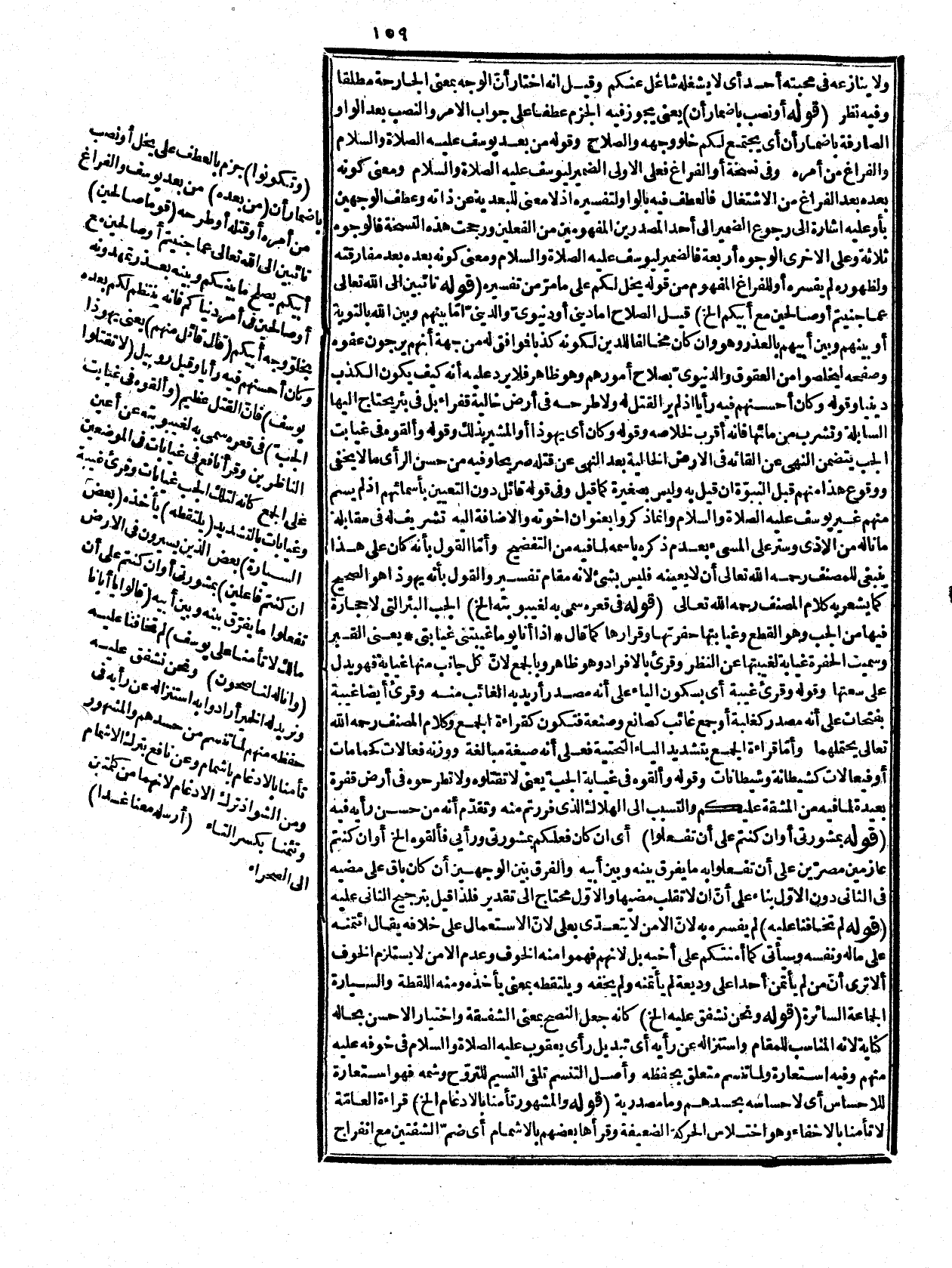 فيهما والنخعيّ، ويعقوب برفع النون، ويلعب بالياء، والفعلان في هذه كلها مبنيان للفاعل، وقرأ زيد بن عليّ بالياء فيهما، والبناء للمفعول، وقرأ نرتعي، ونلعب بثبوت الياء، ورفع الباء، وقرأ ابن أبي عبلة يرعى، ويلعب فهذه أربع عشرة قراءة ست منها في السبعة، وما عداها شاذة وتوجيهها ظاهر، ونرتعي من الرعي أي ترعى مواشينا فأسند إليهم مجازاً أي تجوّز عن أكلهم بالرعي، وكسر العين لأنه مجزوم بحذف آخره، وقوله أن يناله مكروه على تقدير الجار من أو عن. قوله: ( {إِنِّي لَيَحْزُنُنِي أَن تَذْهَبُواْ بِهِ} ) أن قلنا اللام لا تخلص المضارع للحال فظاهر، وان قلنا إنها تخلصه كما هو مذهب الجمهور قيل عليه إنّ الذهاب هنا مستقبل فيلزم تقدم الفعل على فاعله، وهو غير جائز لأنه أثره فلذا قيل إنّ التقدير قصد أن تذهبوا أو توقع أن تذهبوا بتقدير المضاف، وهو الفاعل وهو حال، وقيل يجوز أن يكون الذهاب يحزنه باعتبار تصوّره كما قيل نظيره في العلة الغائية، وقد قيل إن اللام فيه جرّدت للتأكيد مسلوبة الدلالة عن التخليص للحال (قلت) كذا قالوا: وأنا أظن ذلك مغلطة لا أصل لها فإنّ لزوم كون الفاعل موجوداً عند وجود الفعل إنما هو في الفاعل الحقيقيّ لا النحوقي، واللغويّ فإن الفعل يكون قبله سواء كان حالاً كما فيما نحن فيه أو ماضيا كما أنه يصح أن يكون الفاعل في مثله أمراً معدوماً كما في قوله: